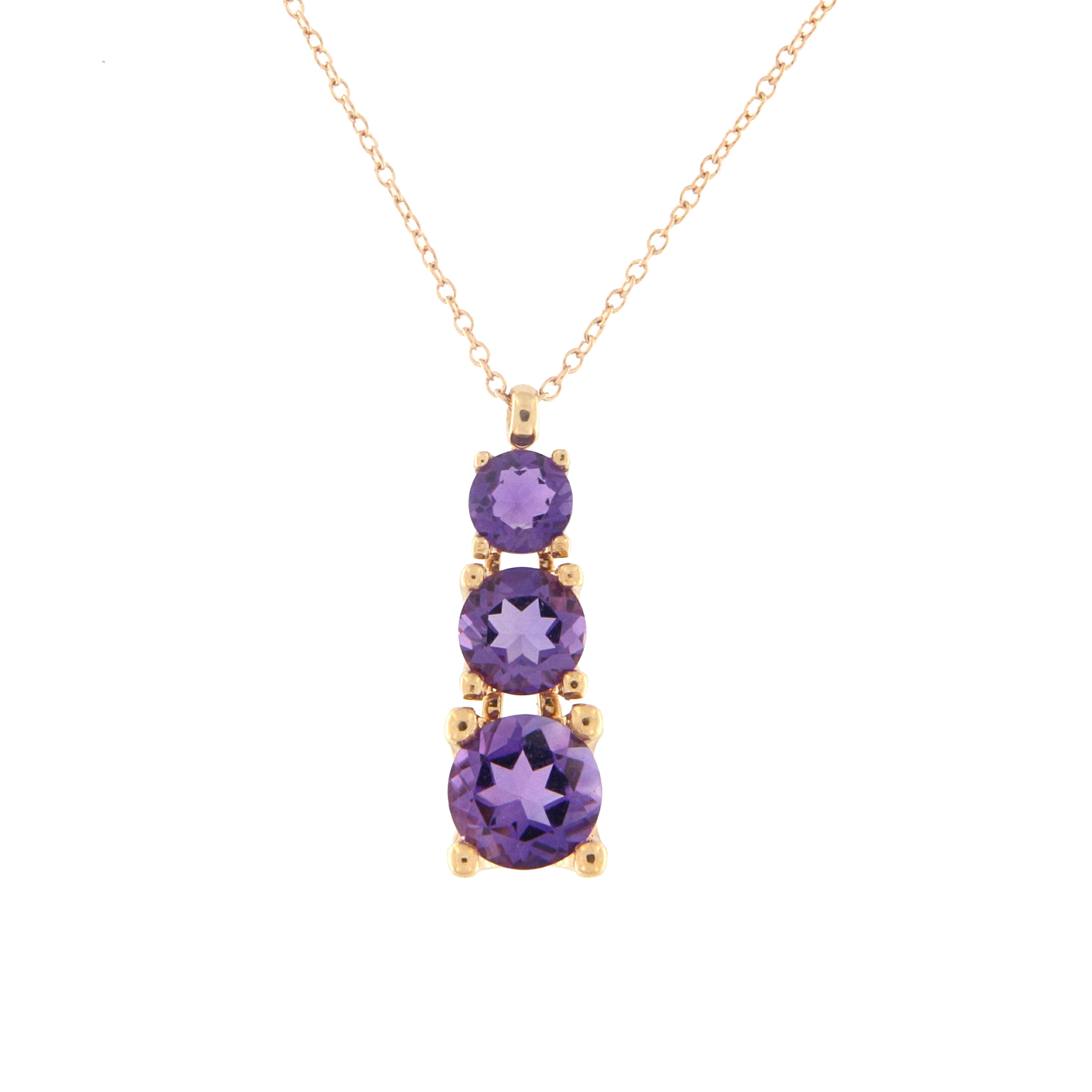 Colgante oro rosa 18K, amatista, cadena rolo 42cm cierre mosqueton