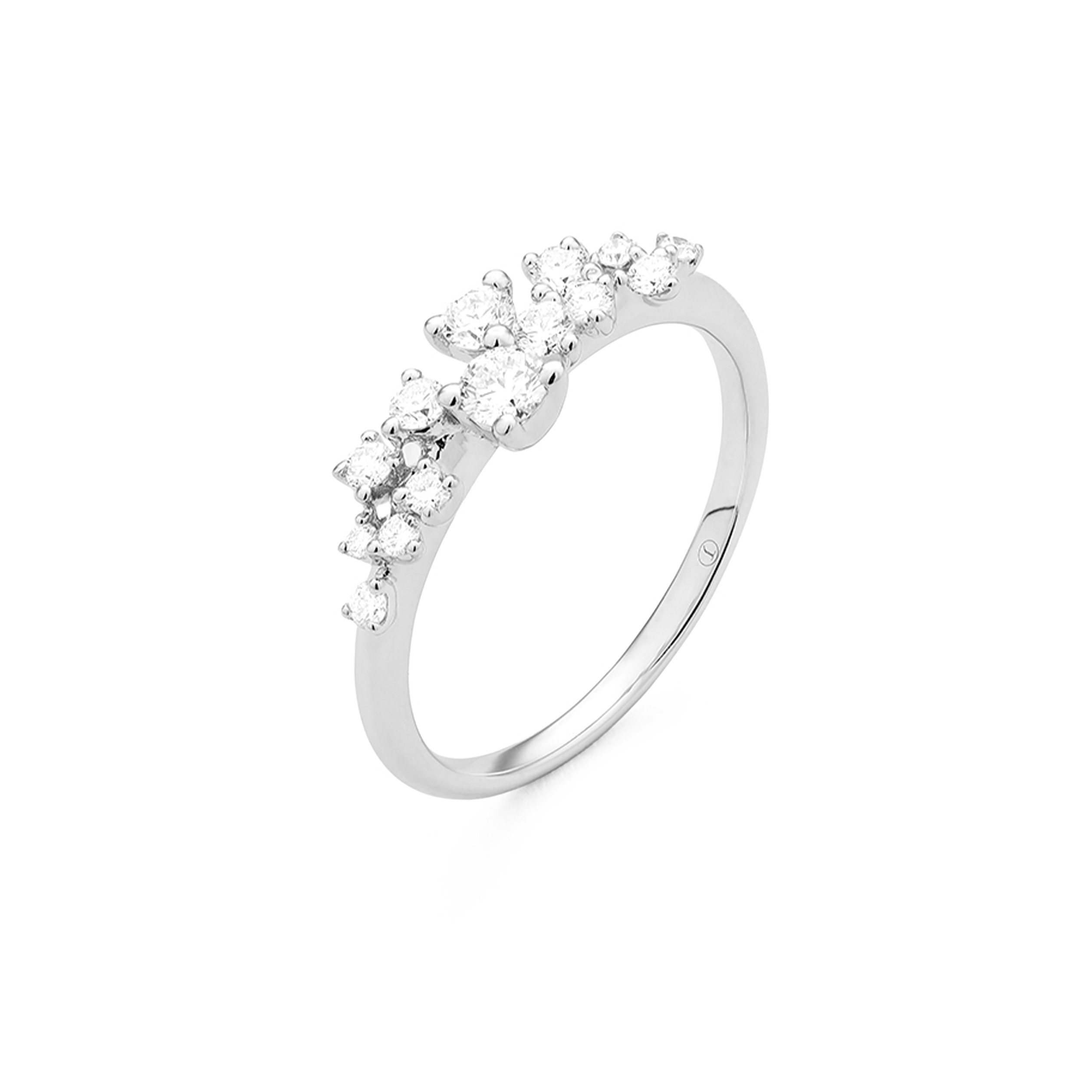 Sortija oro blanco 18K, diamante color GH, claridad SI 0.42 ct, 14 piedras