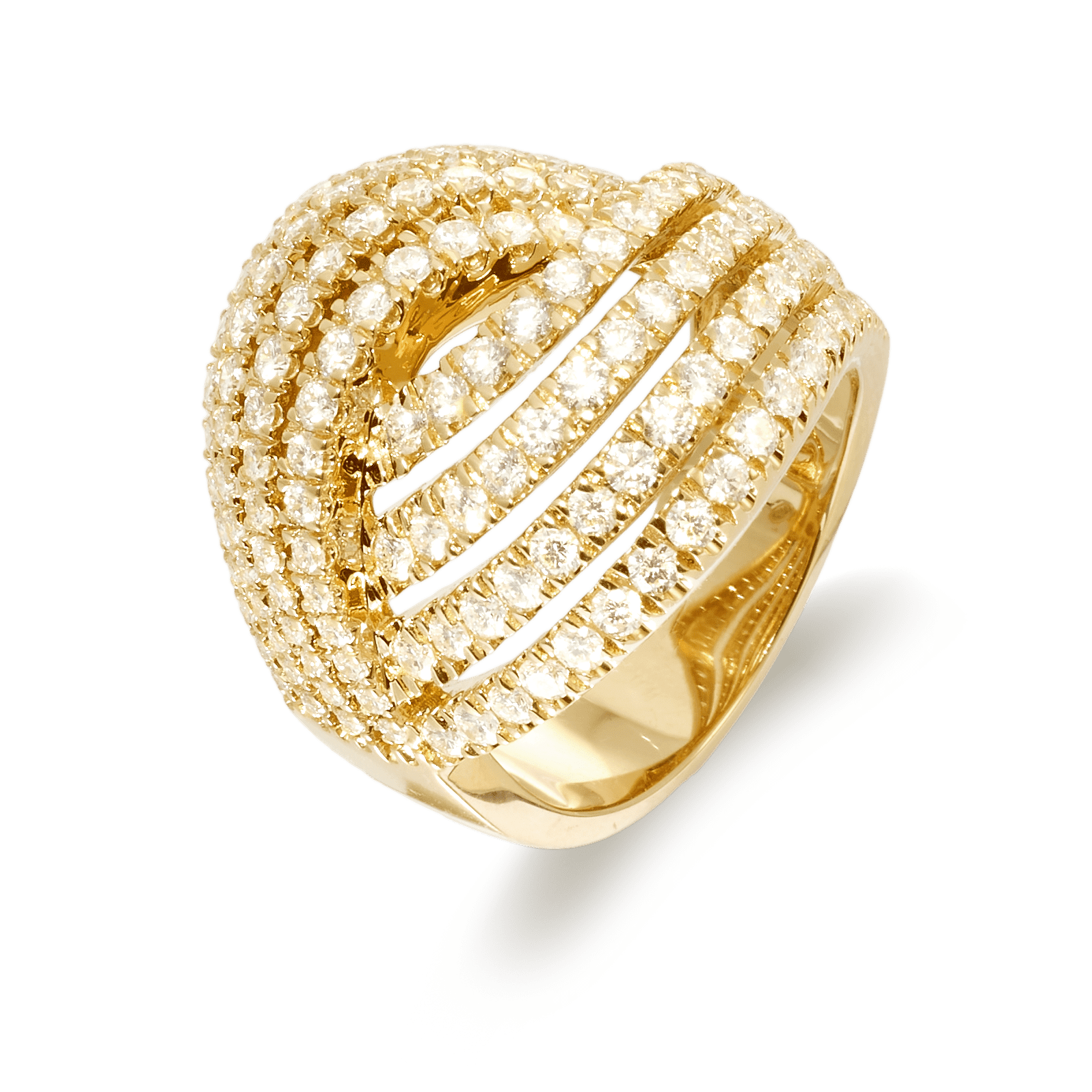 Sortija oro amarillo 18K, diamante color GH, claridad SI 2.21 ct, 142 piedras