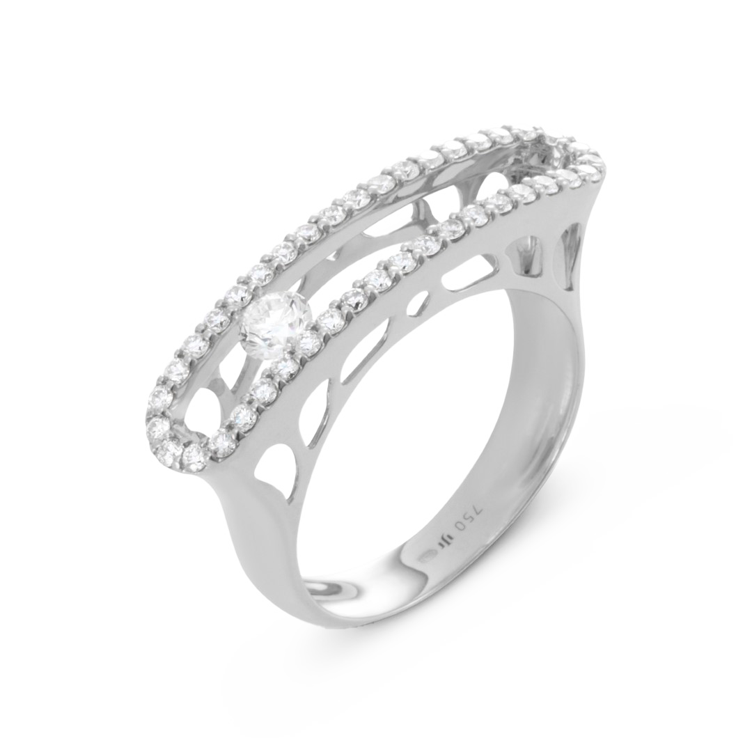 Sortija oro blanco 18K, diamante color GH, claridad SI 0.57 ct, 41 piedras