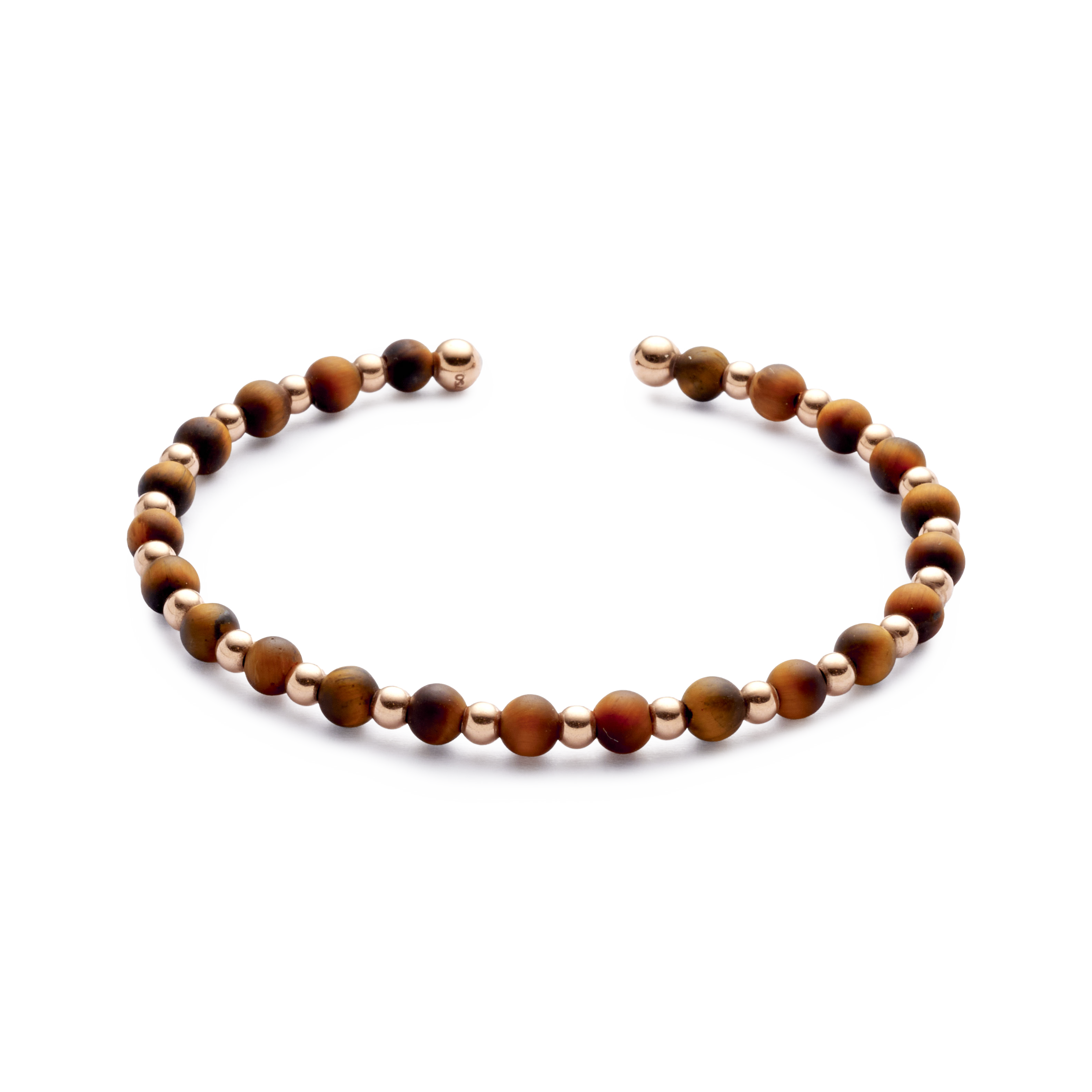 Pulsera oro rosa 18K, ojo de tigre, bola 4mm bola 3mm
