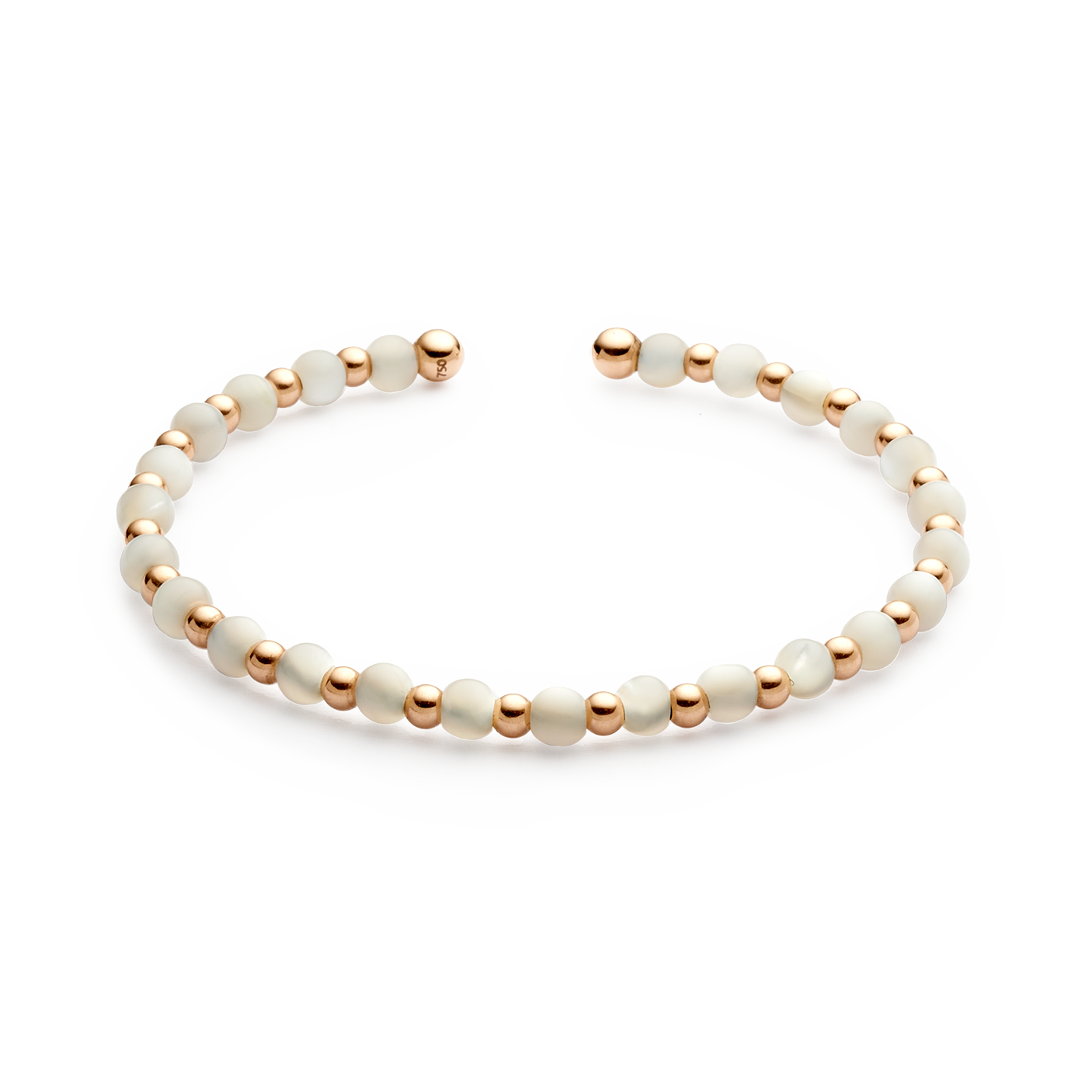 Pulsera oro rosa 18K, madre perla, bola 4mm bola 3mm