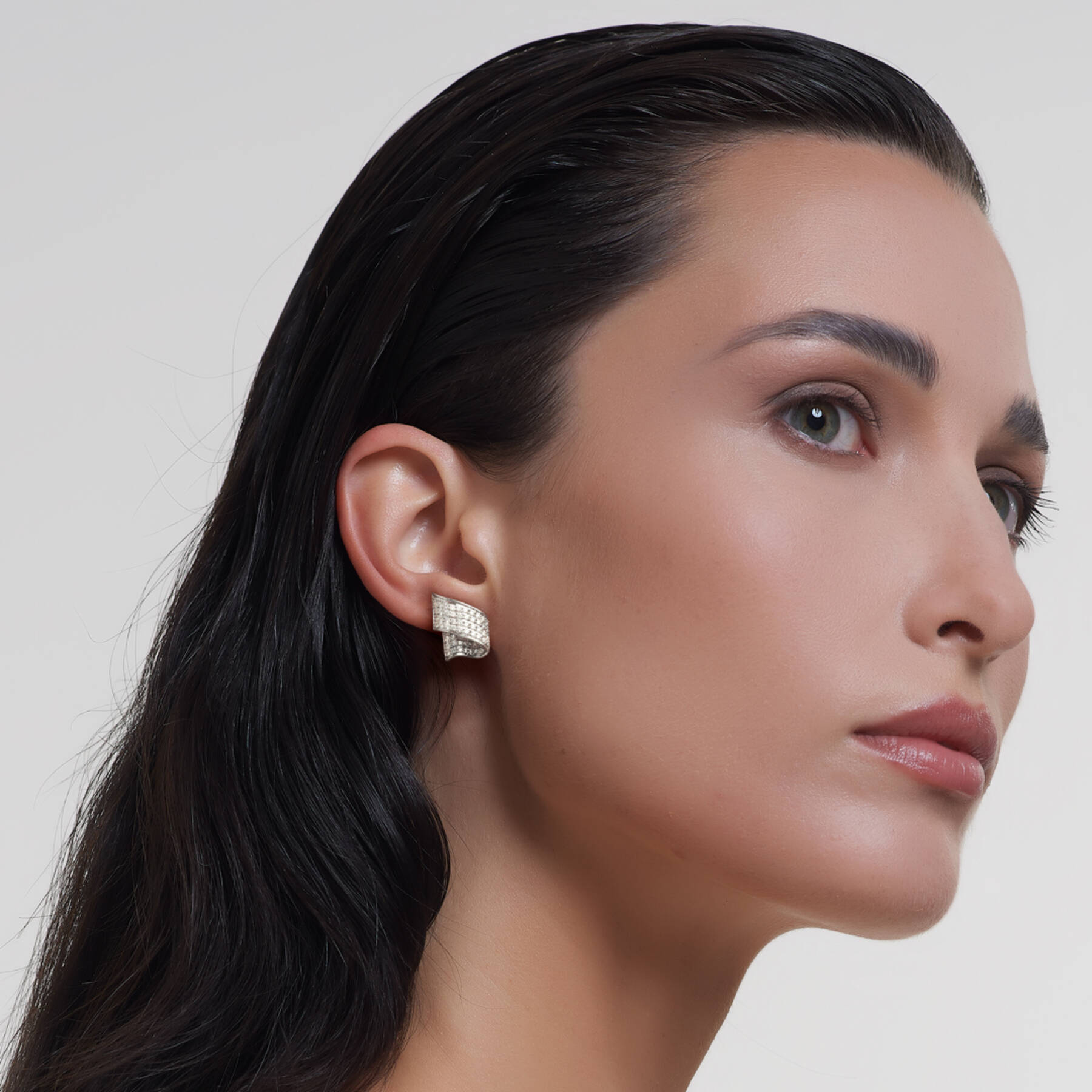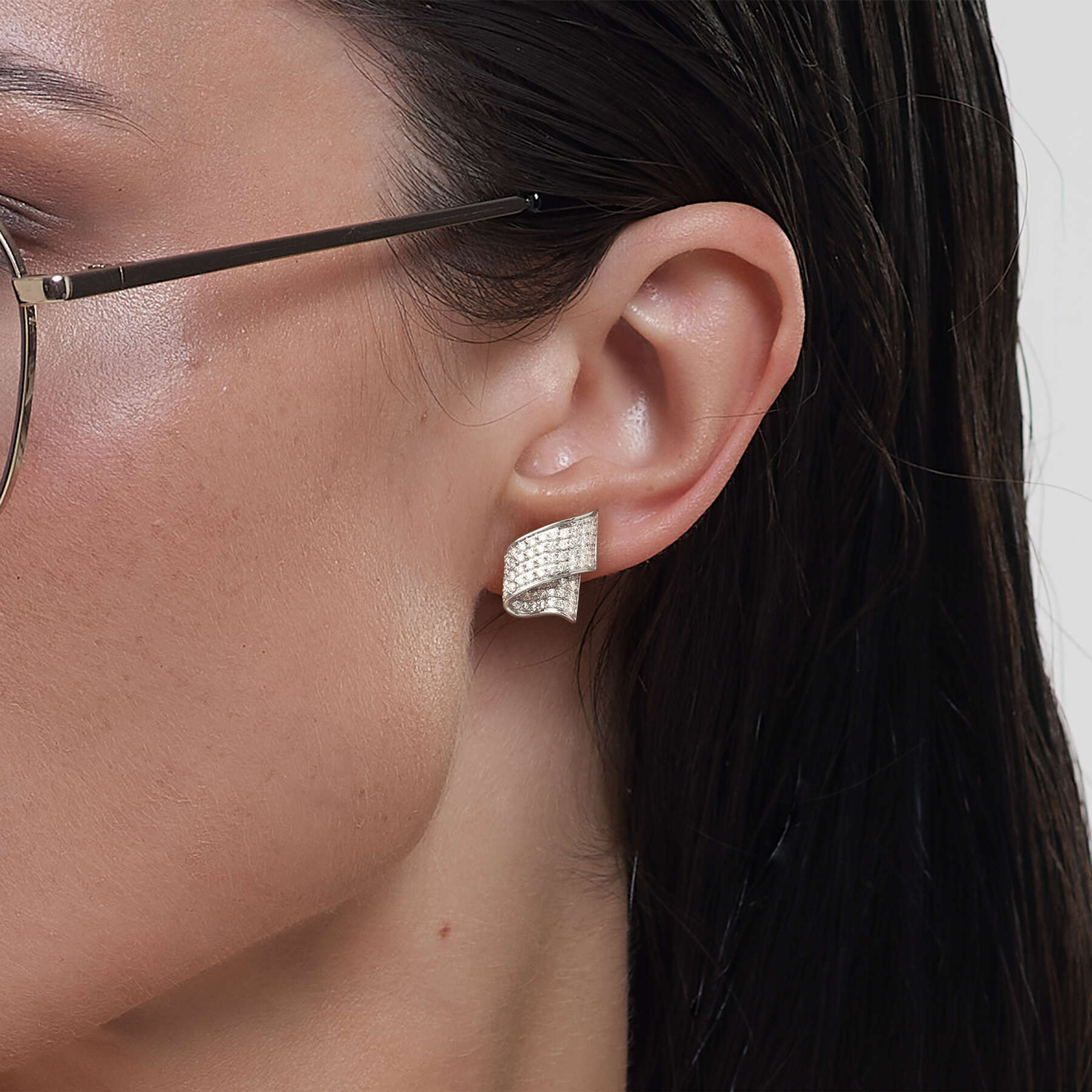 Pendientes oro blanco 18K, diamante color GH, claridad SI 1.49 ct, 128 piedras, cierre presión