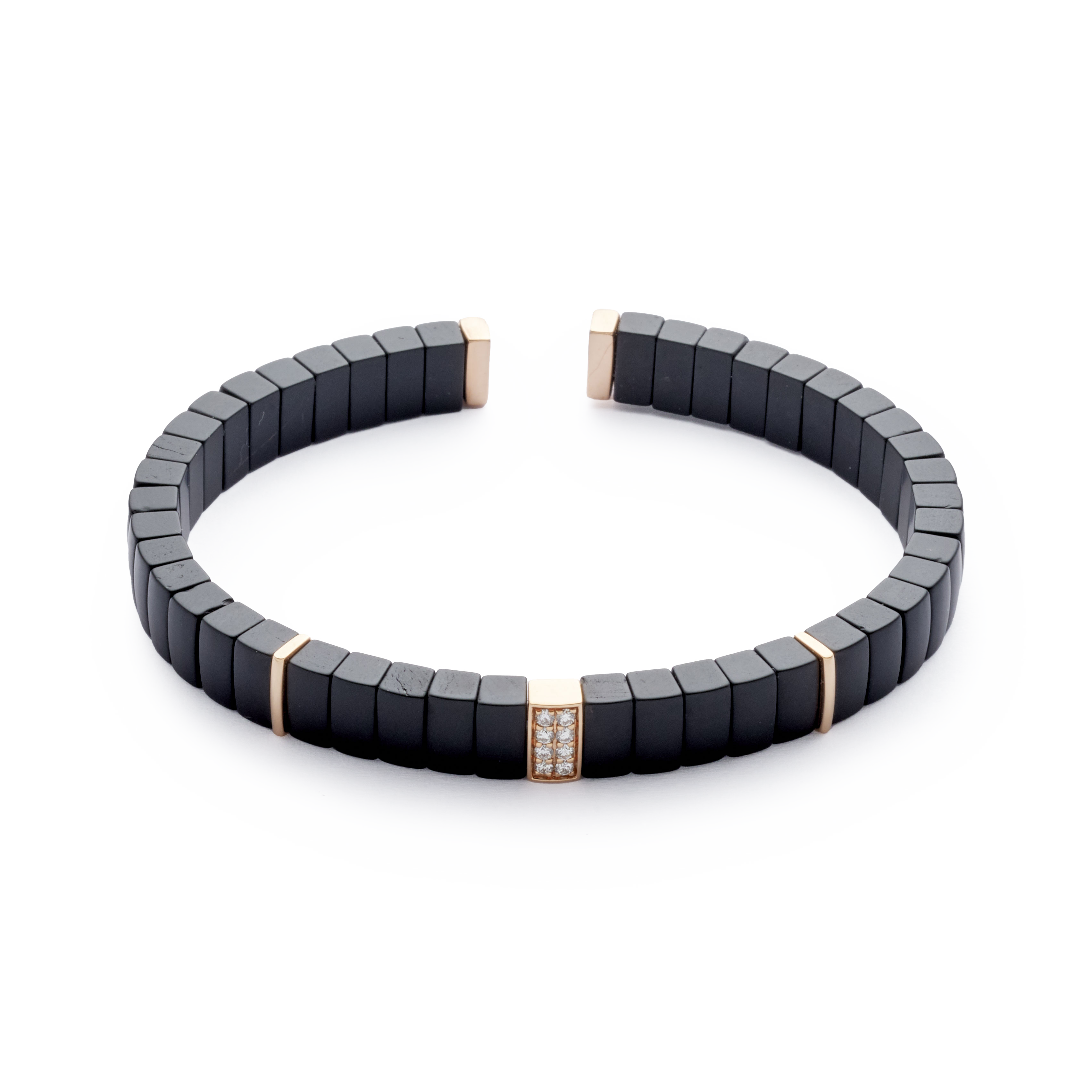 Pulsera oro rosa 18K, diamante color GH, claridad SI 0.10 ct, onix, 8 piedras, titanio talla M (16.0cm)