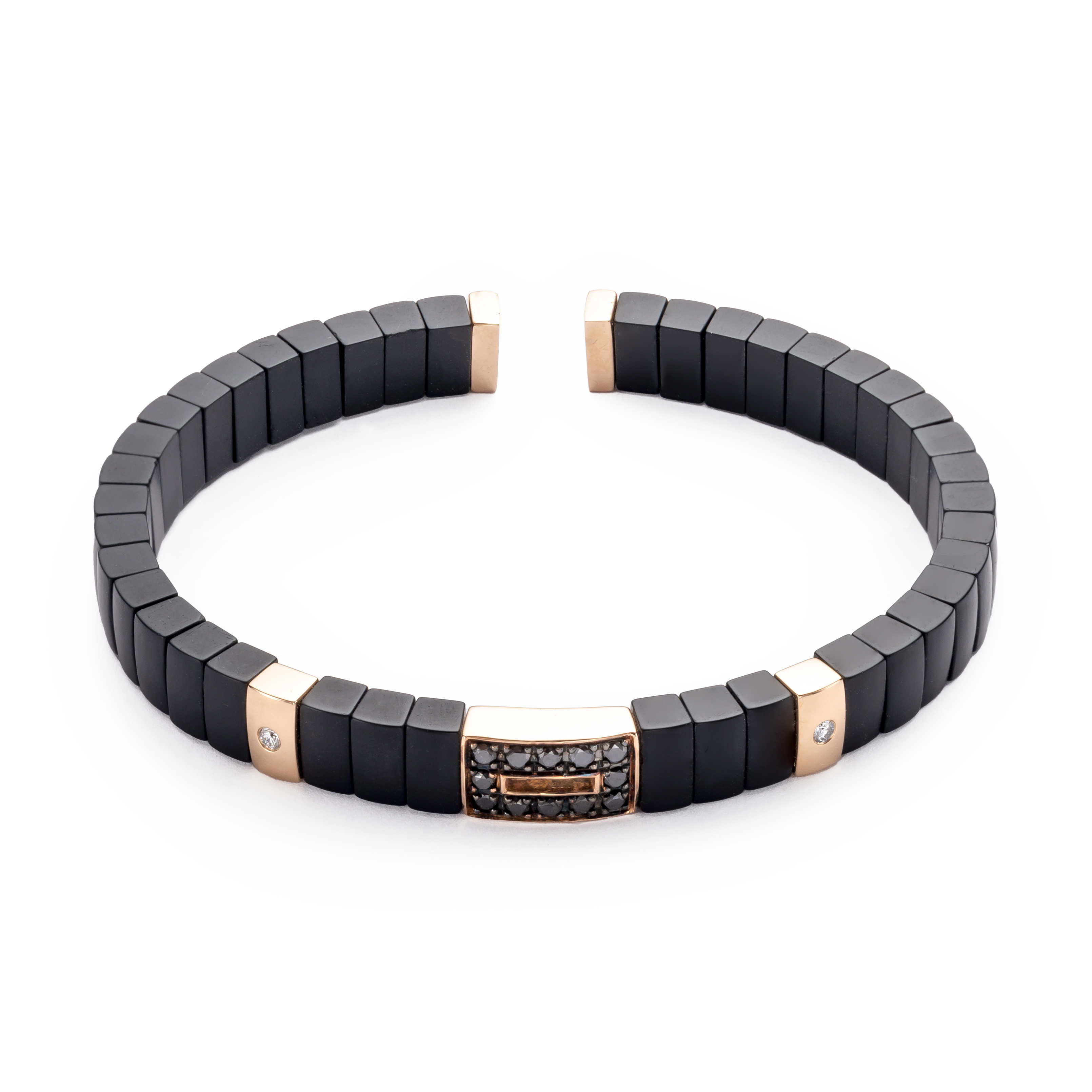 Pulsera oro rosa 18K, diamante color GH, claridad SI 0.06 ct y diamante negro 0.27 ct, onix, 14 piedras, titanio talla M (16.0cm)