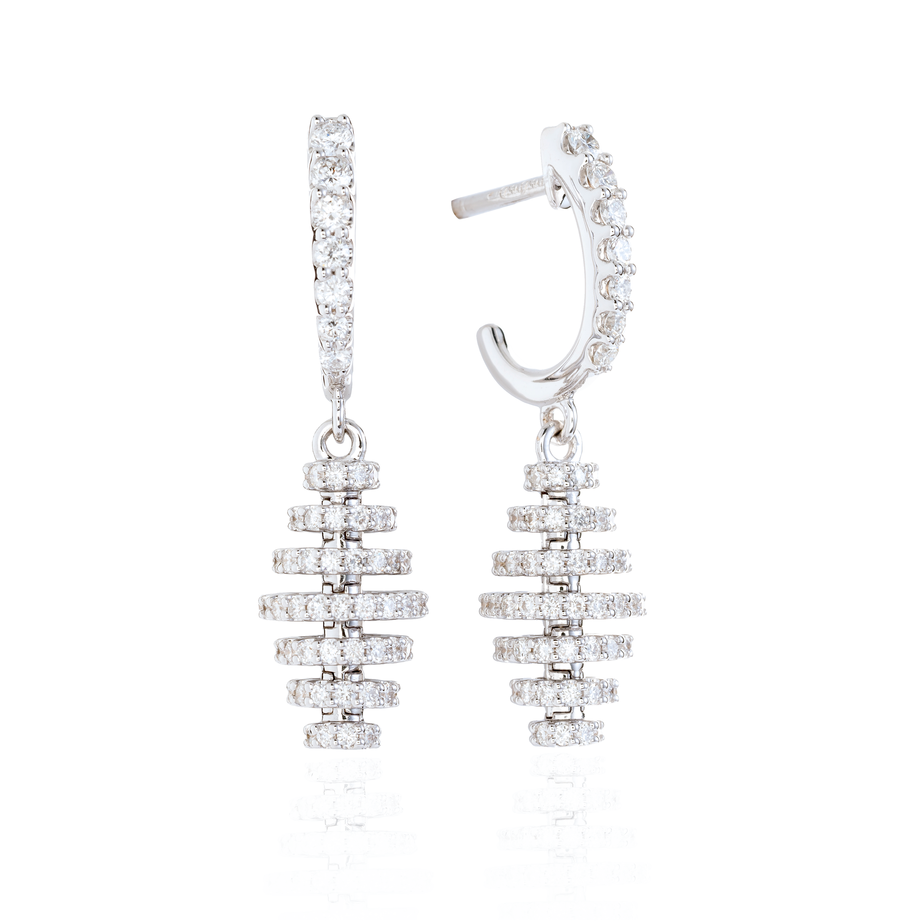 Pendientes oro blanco 18K, diamante color GH, claridad SI 1.16 ct, 212 piedras, cierre presión