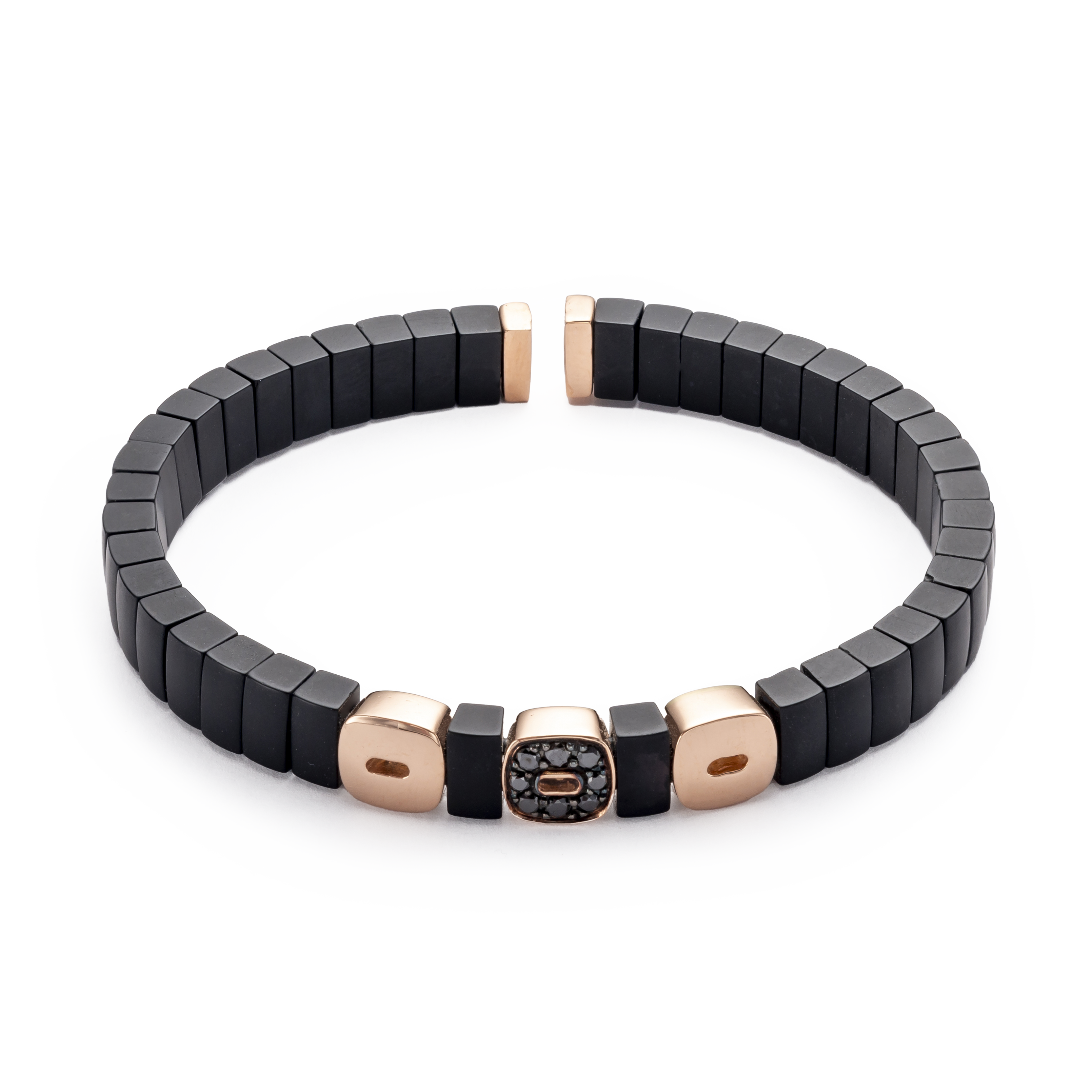 Pulsera oro rosa 18K, diamante negro 0.18 ct, onix, 8 piedras, titanio talla M (16.0cm)