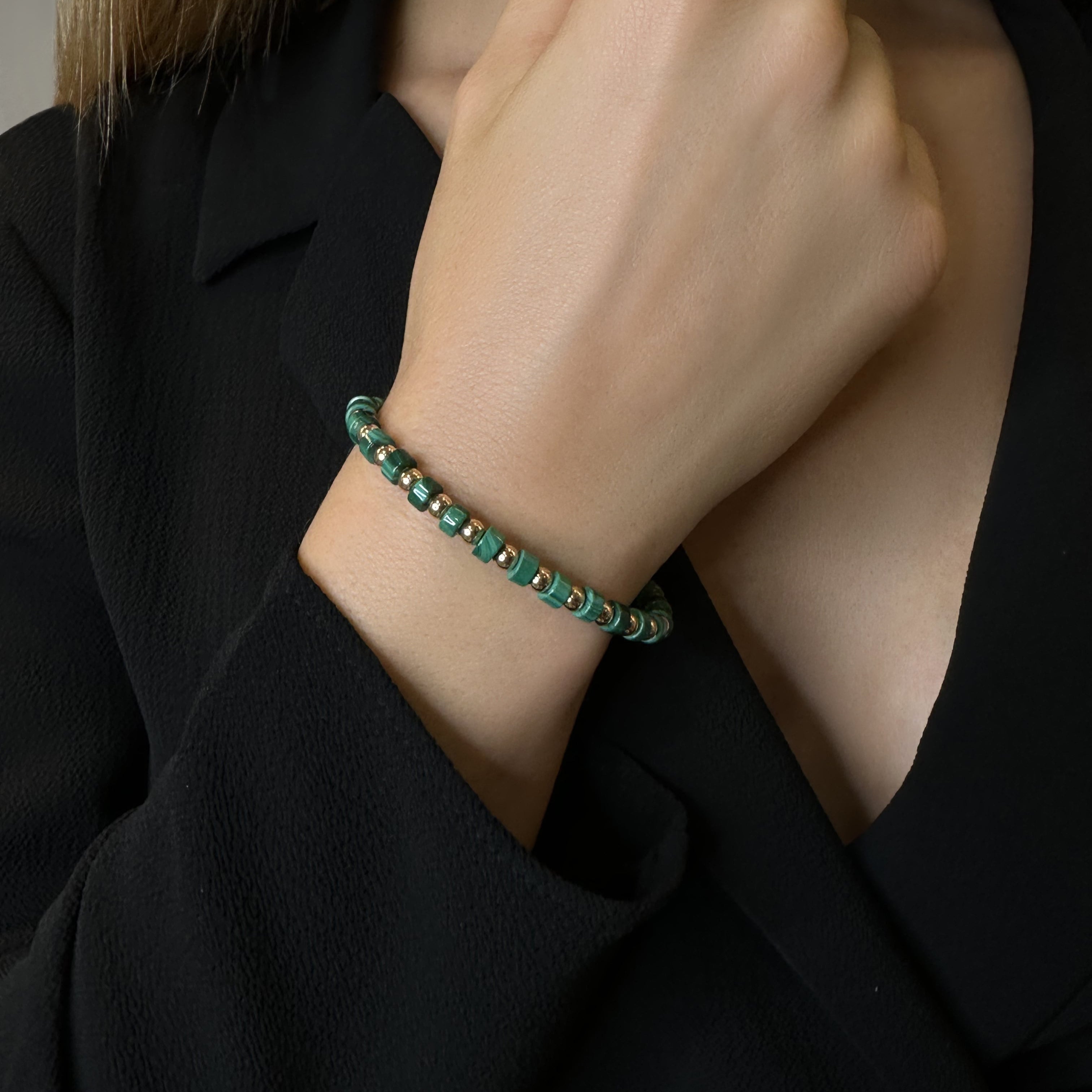 Pulsera oro rosa 18K, malaquita, titanio talla M (16.0cm) bola 4mm