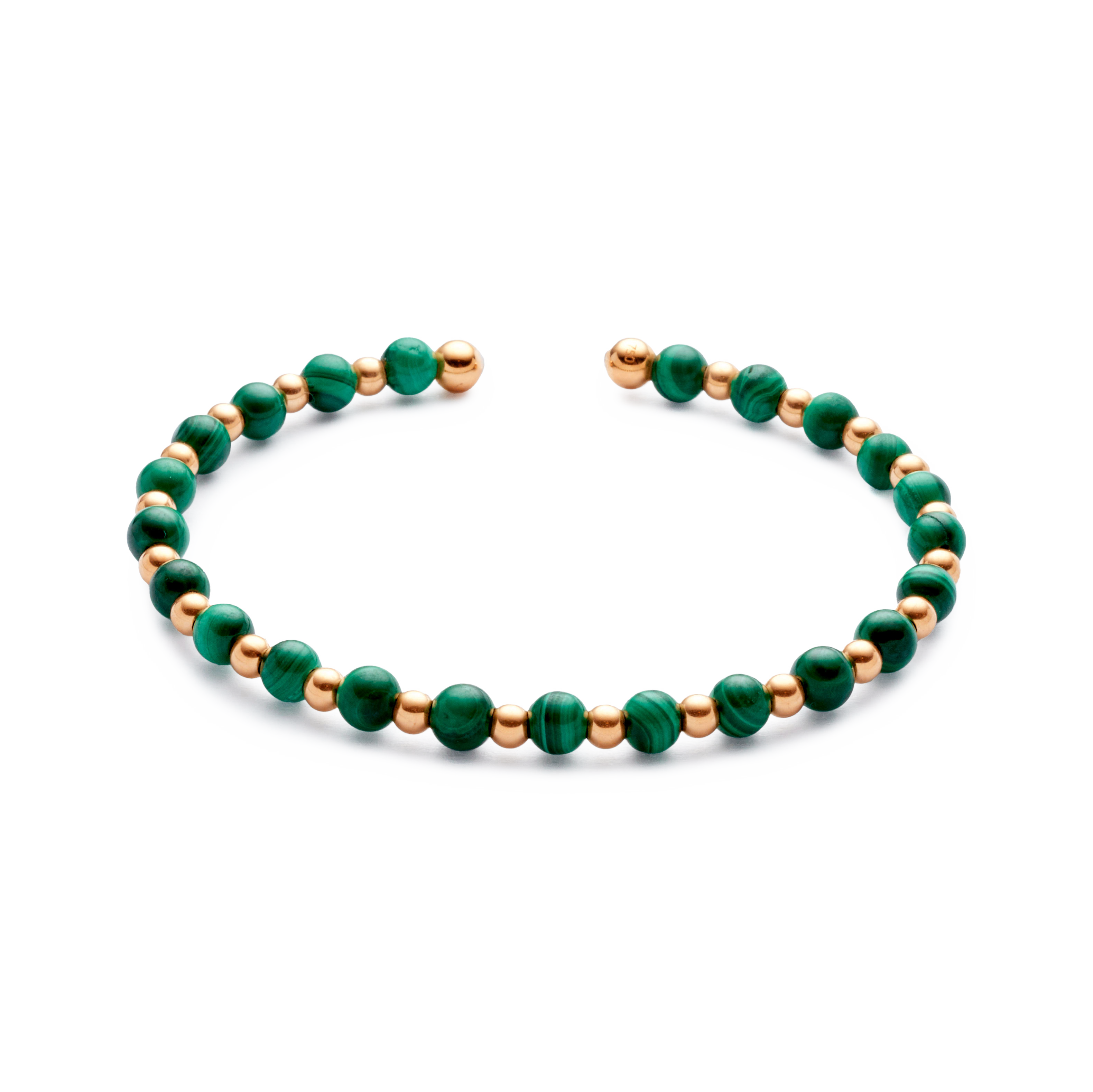 Pulsera oro rosa 18K, malaquita, bola 4mm bola 3mm
