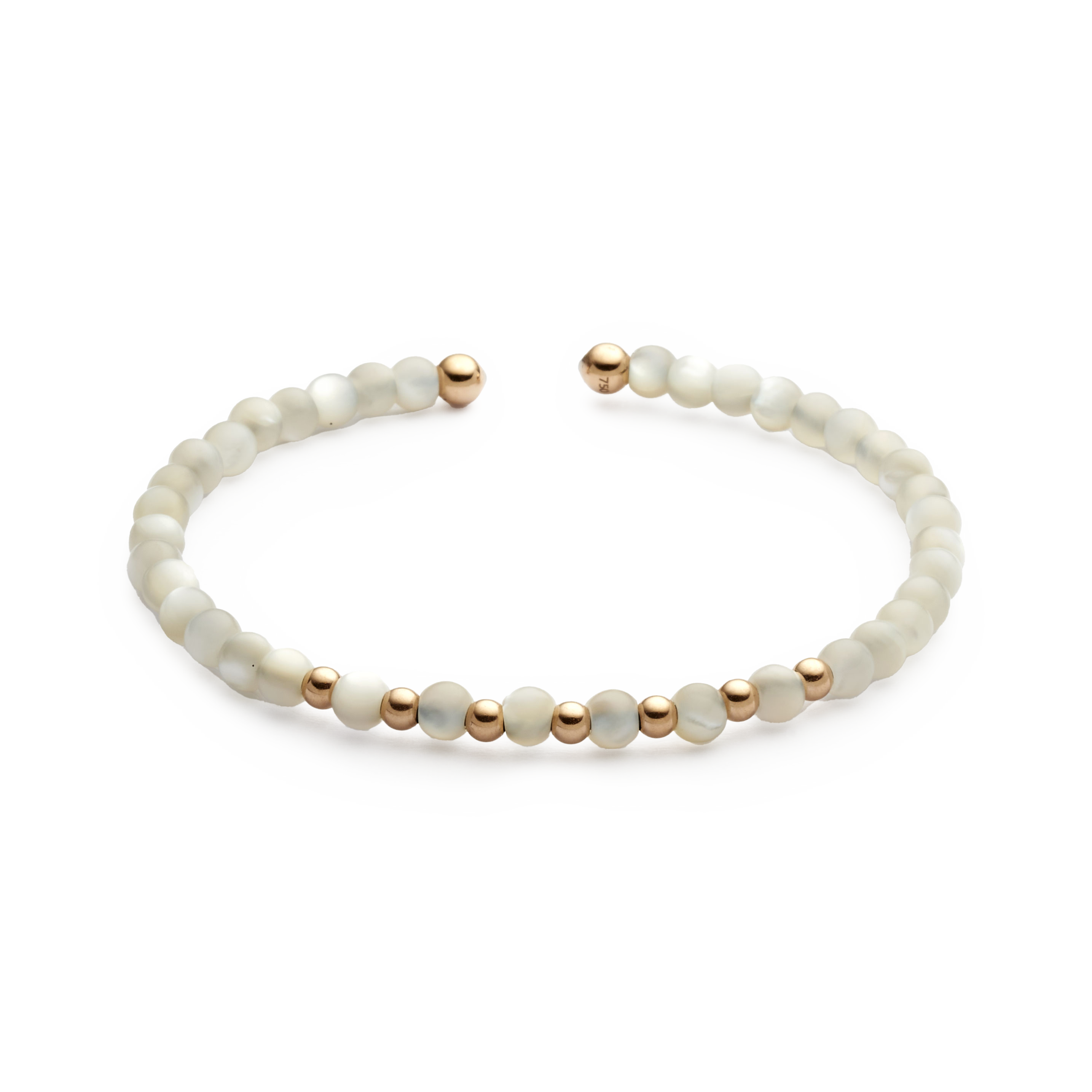Pulsera oro rosa 18K, madre perla, bola 4mm bola 3mm
