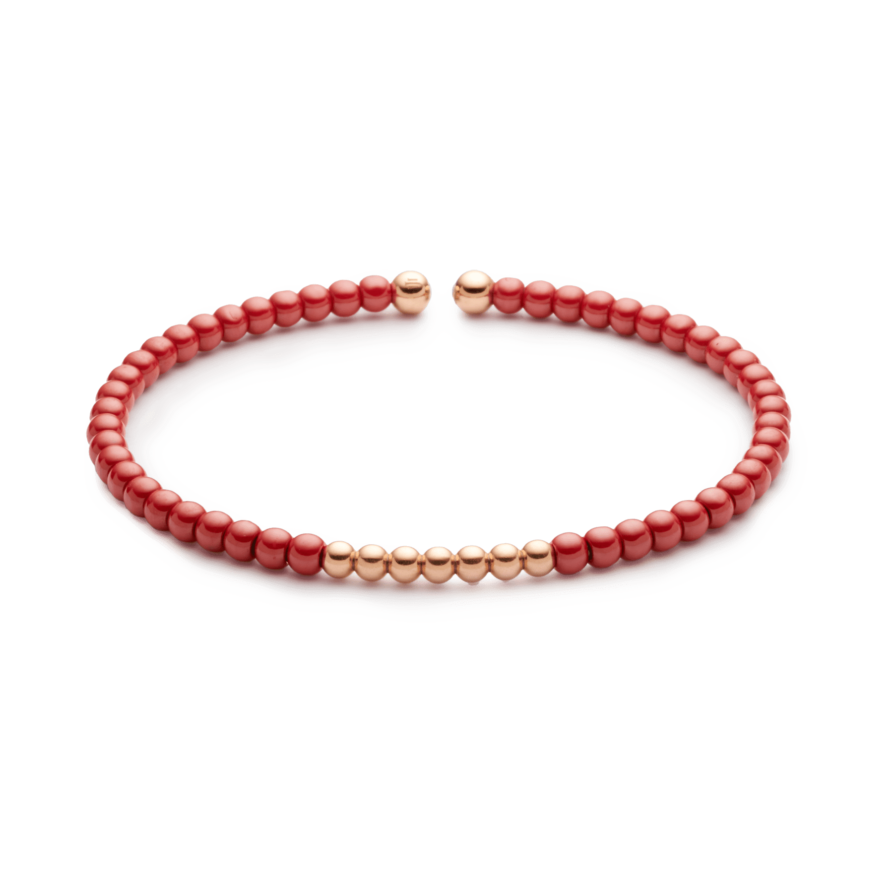 Pulsera oro rosa 18K, bola 4mm bola 3mm