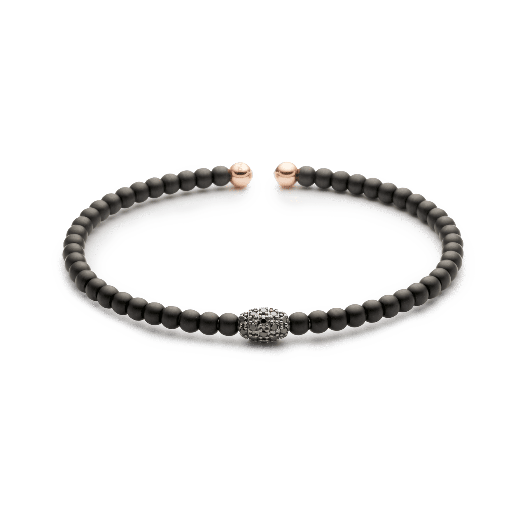 Pulsera oro rosa 18K, diamante negro 0.25 ct, 34 piedras, bola 4mm