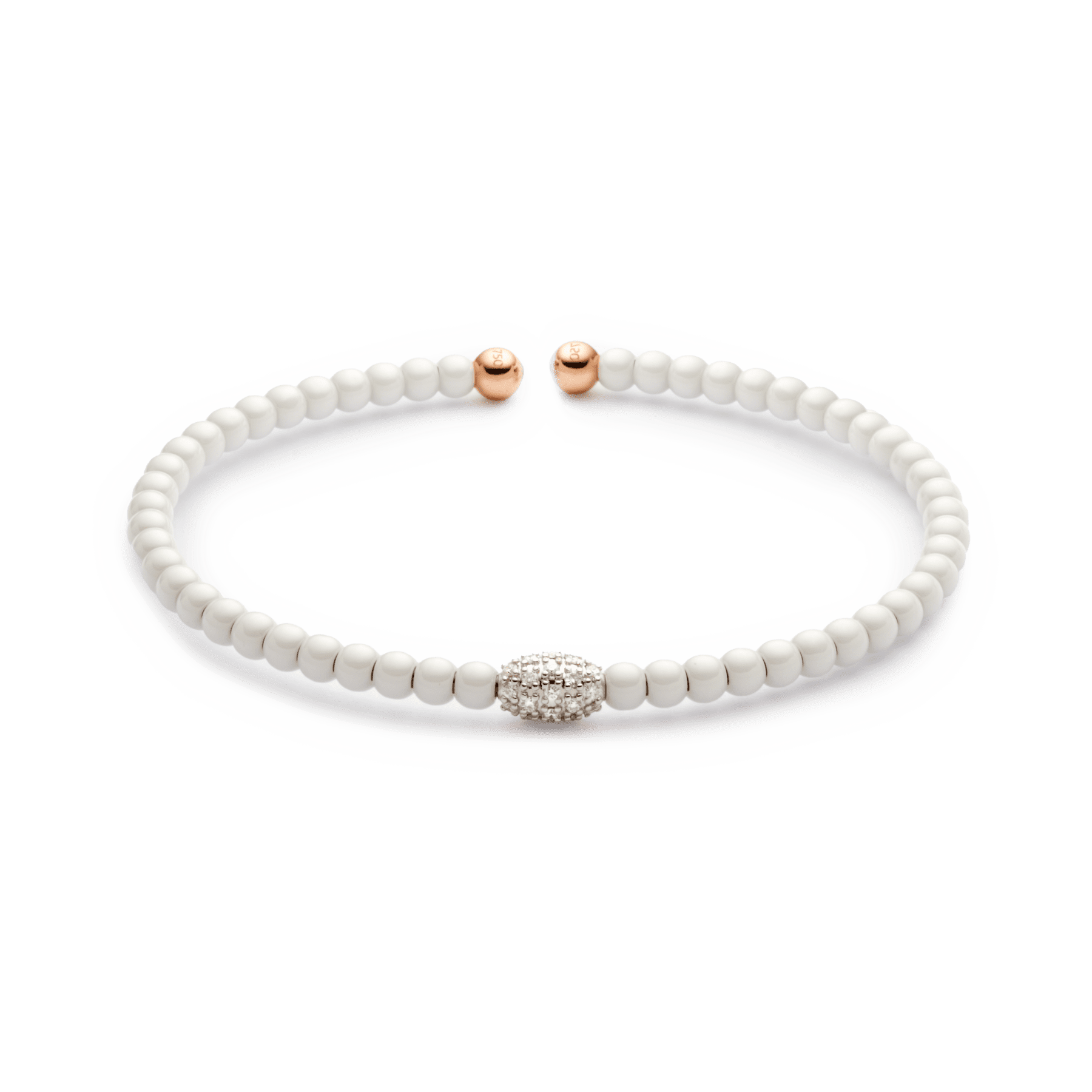 Pulsera oro rosa 18K, diamante color GH, claridad SI 0.22 ct, 34 piedras, bola 4mm