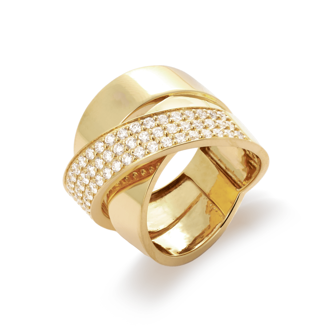 Sortija oro amarillo 18K, diamante color GH, claridad SI 1.11 ct, 60 piedras