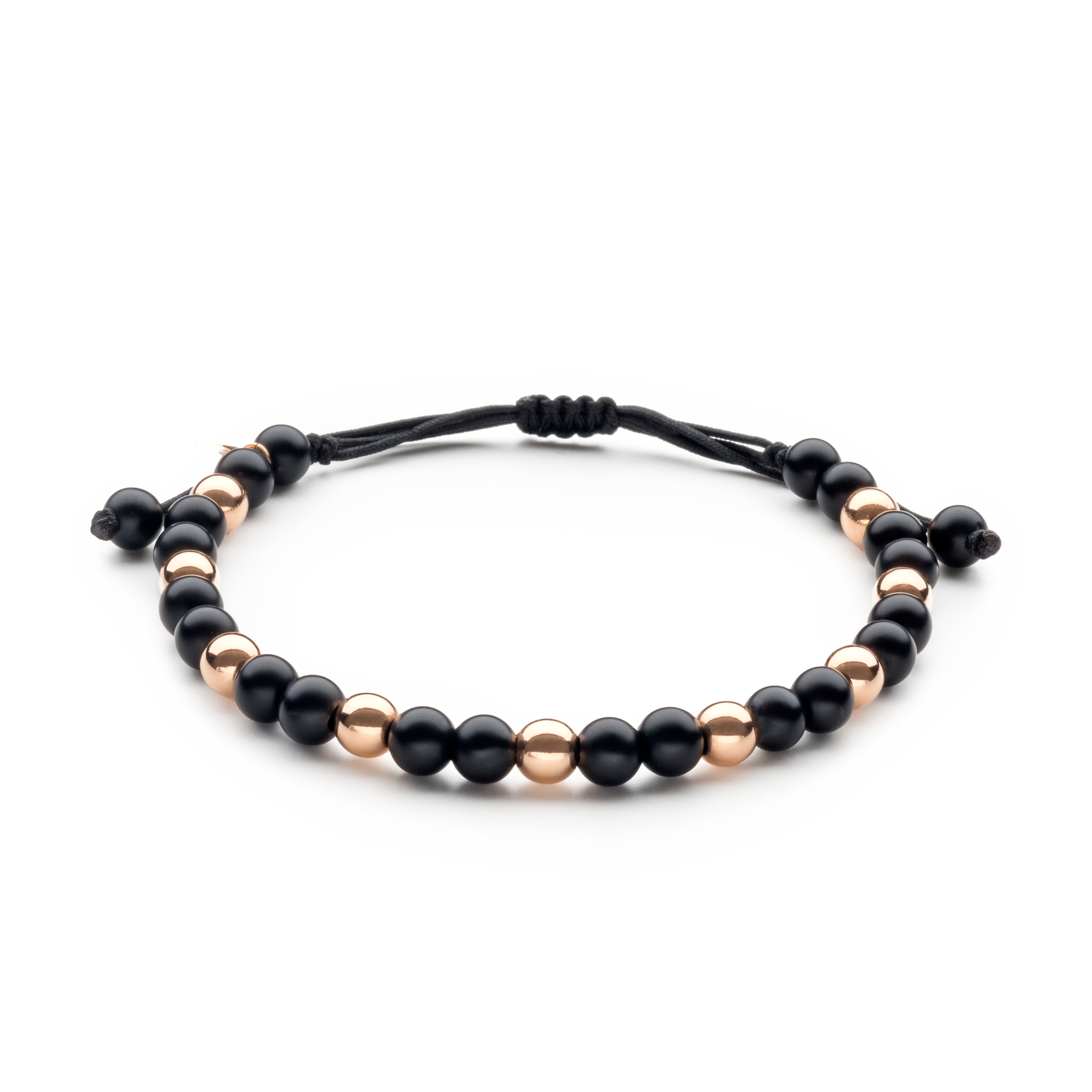 Pulsera oro rosa 18K, onix, bola 5mm