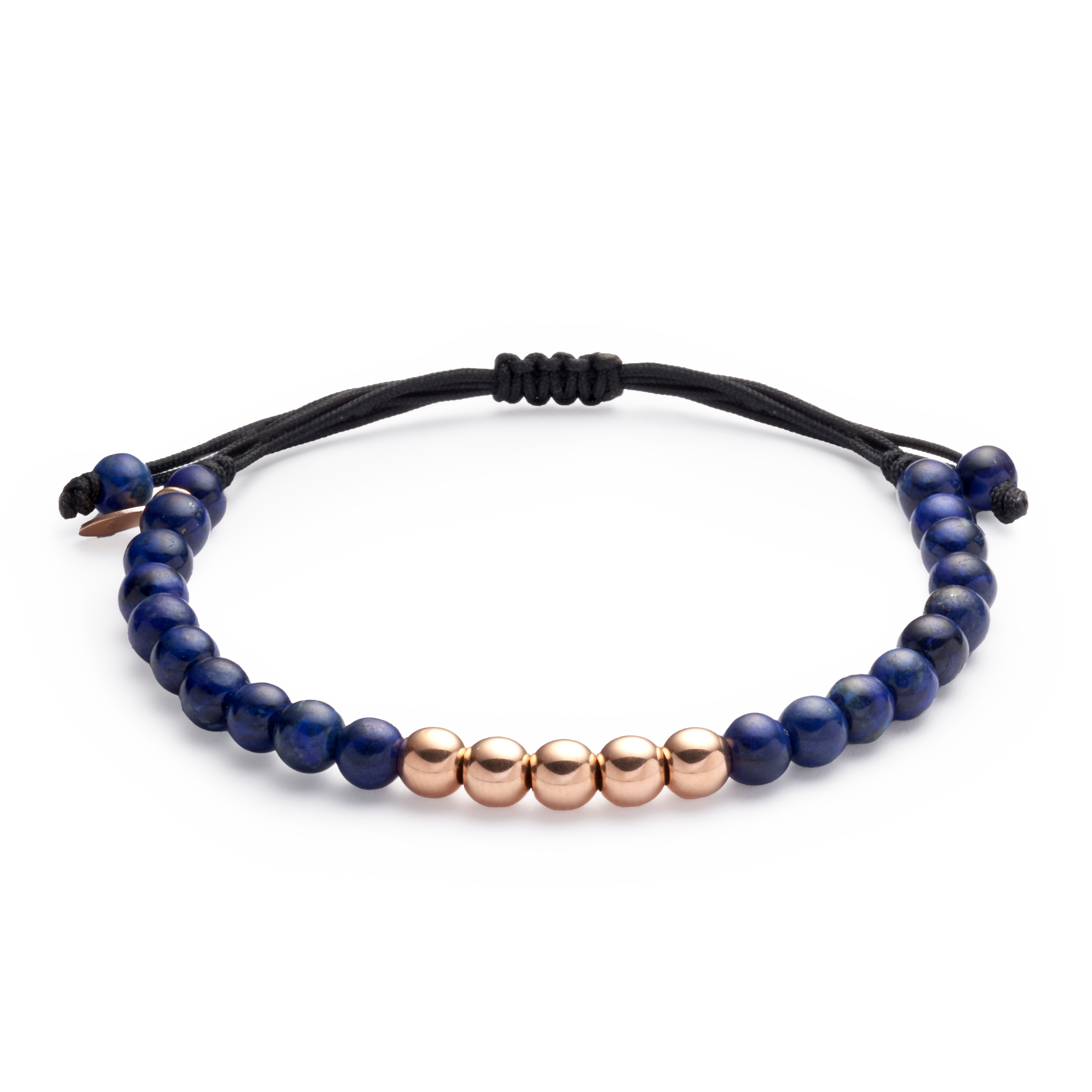 Pulsera oro rosa 18K, lapislazuli, bola 5mm, Cordón de nailon ajustable de 15cm a 25cm