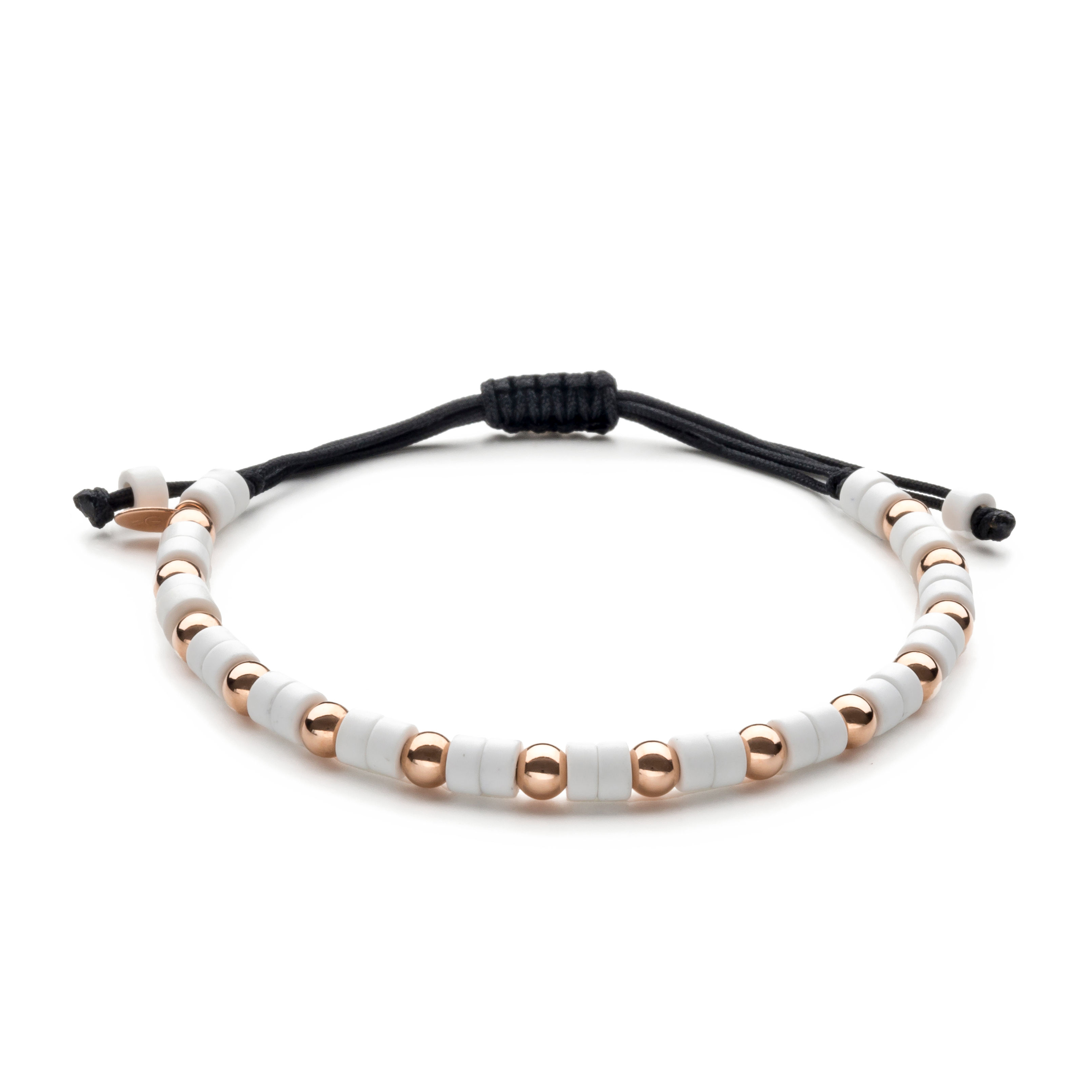 Pulsera oro rosa 18K, p de agata, bola 4mm, Cordón de nailon ajustable de 15cm a 25cm
