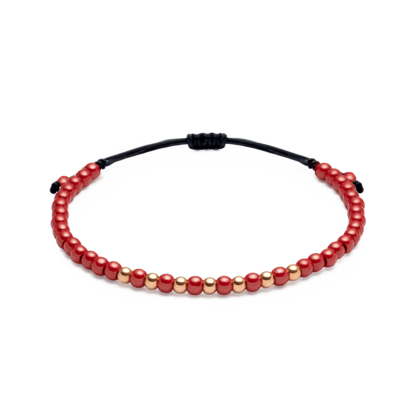 Pulsera oro rosa 18K, bola 3mm, Cordón de nailon ajustable de 15cm a 25cm