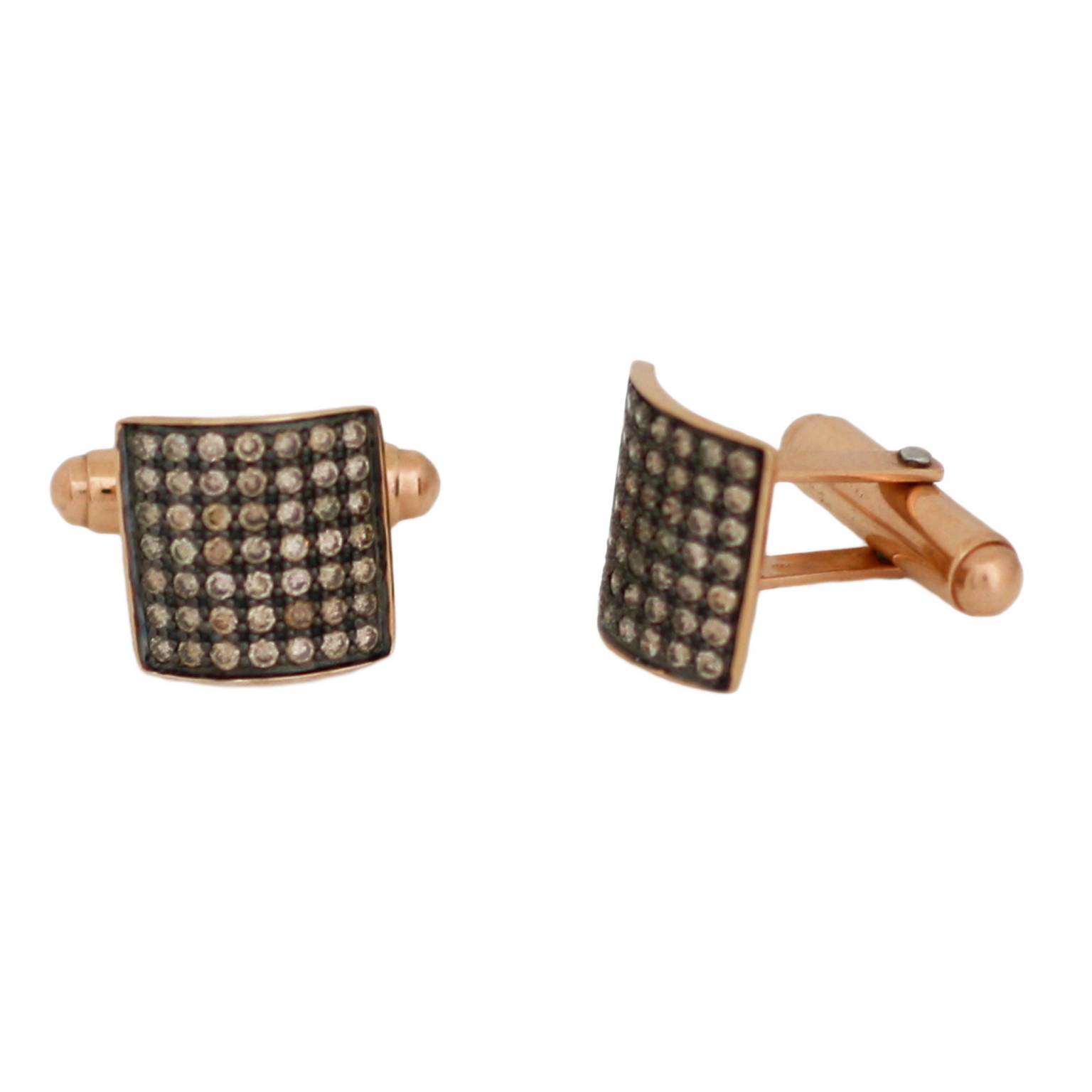 Gemelos oro rosa 18K, diamante brown 1.26 ct, 98 piedras, cierre gemelos