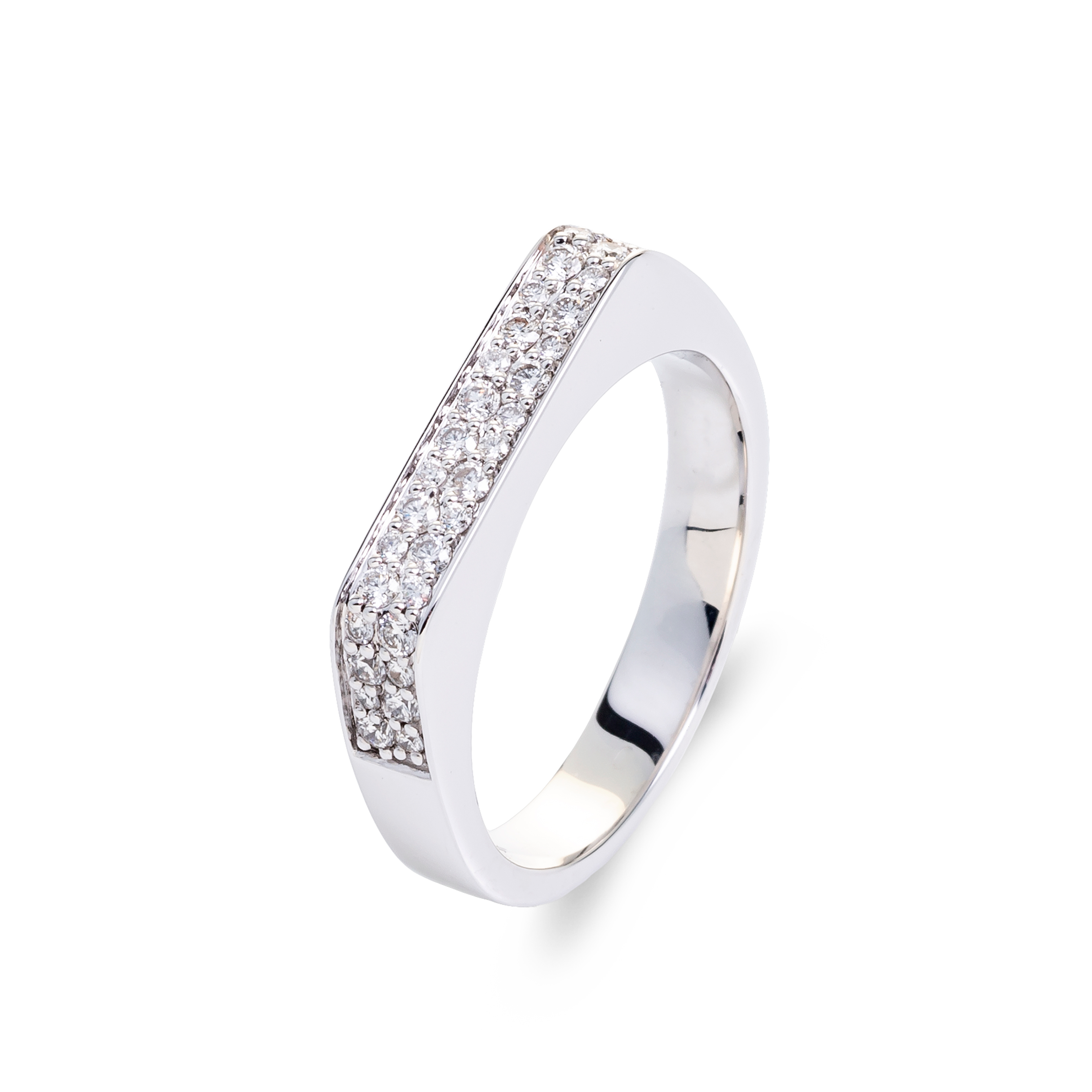 Sortija oro blanco 18K, diamante color GH, claridad SI 0.44 ct, 36 piedras