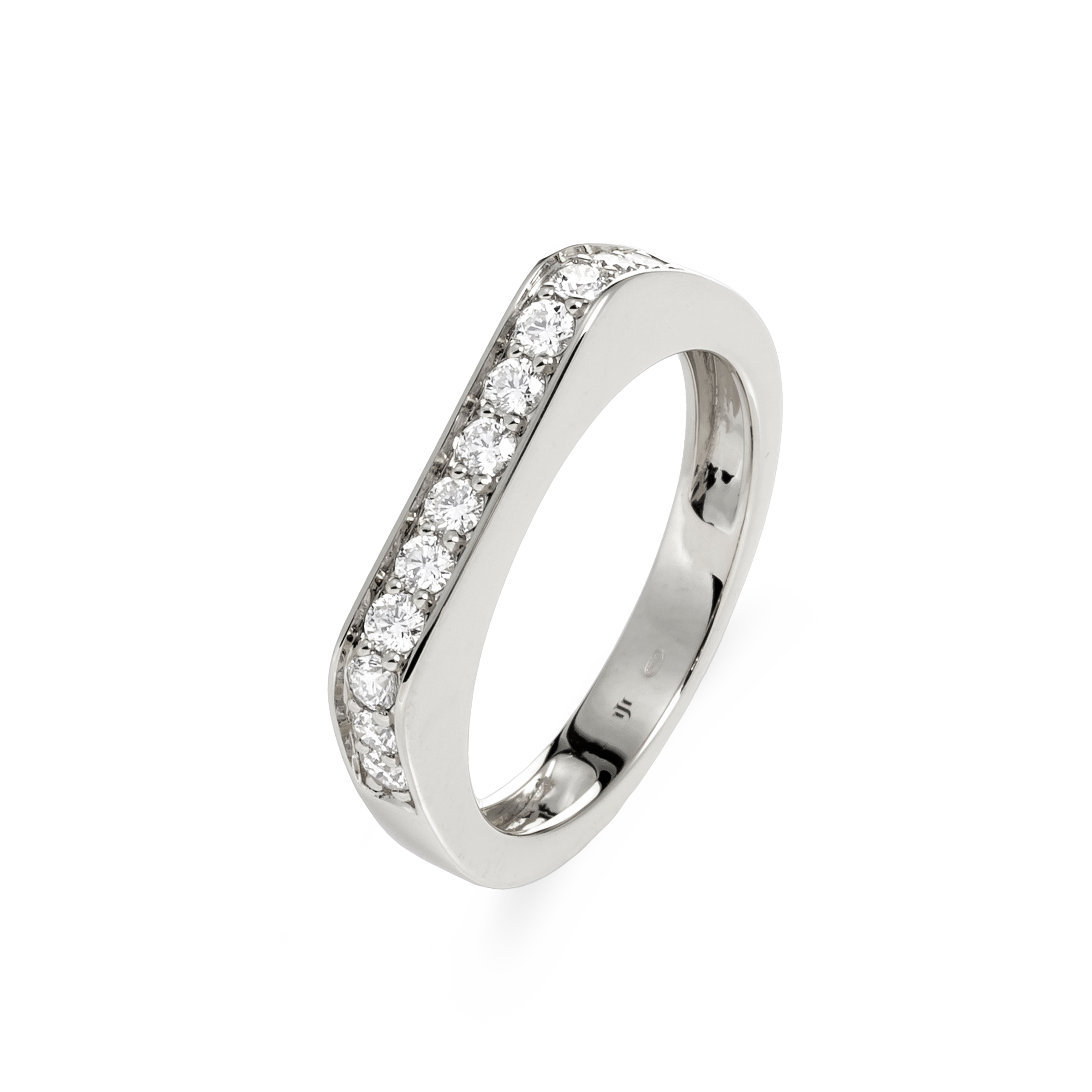 Sortija oro blanco 18K, diamante color GH, claridad SI 0.41 ct, 12 piedras