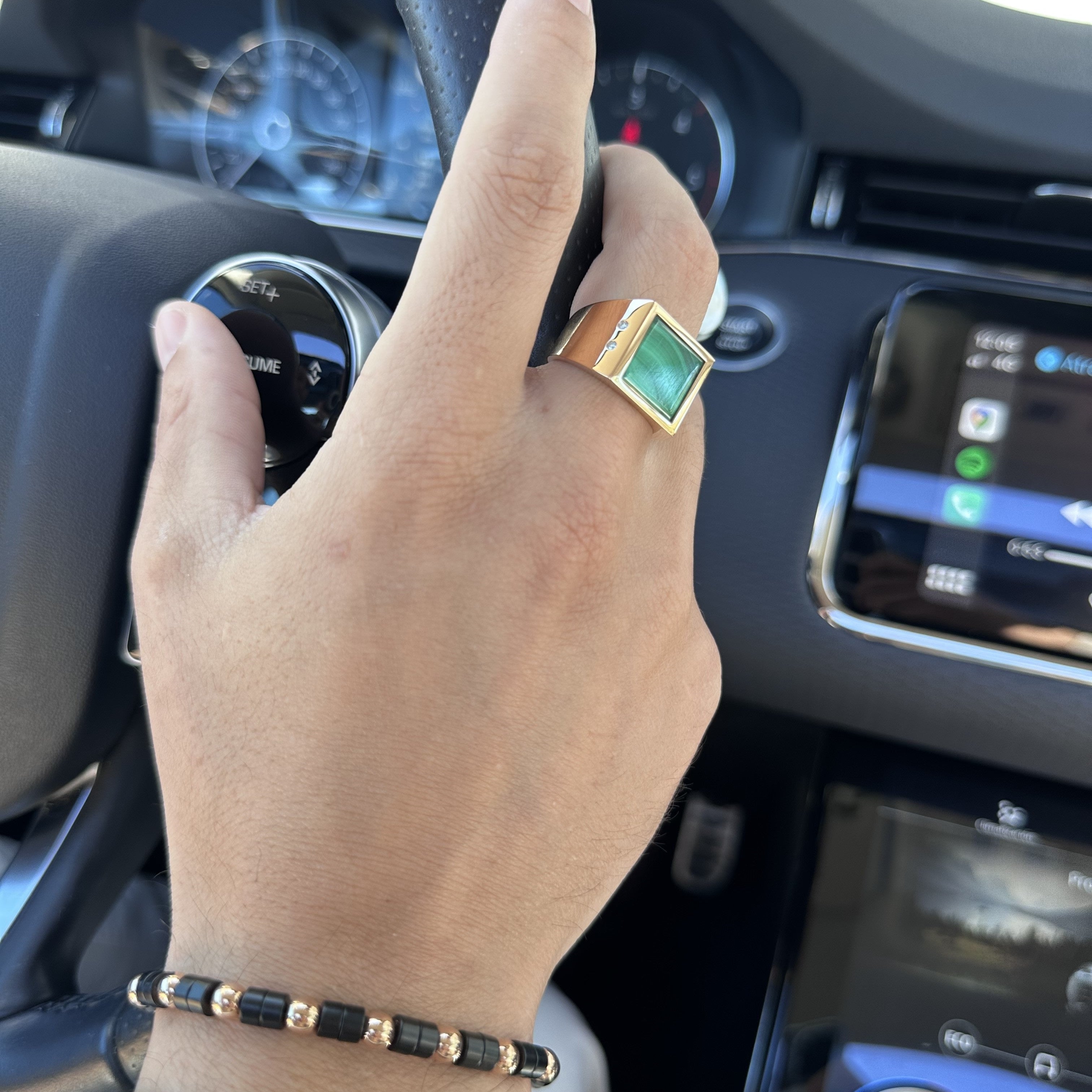 Colección Wolf Men rings & surf, Diamante 0.06 ct, malaquita, sellos
