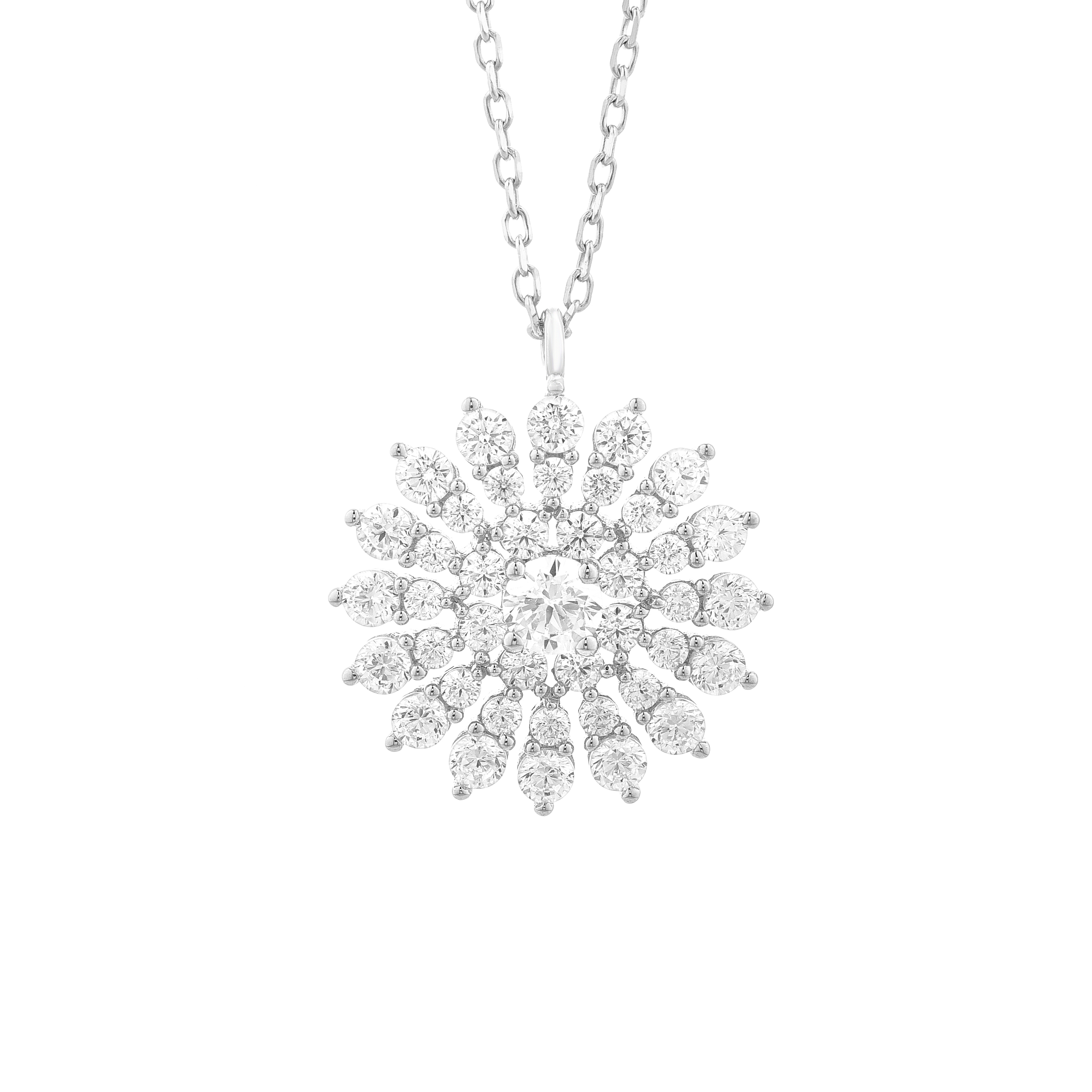 Colgante oro blanco 18K, diamante color GH, claridad SI 0.77 ct, 41 piedras, cadena forzatina 42cm cierre mosquetón