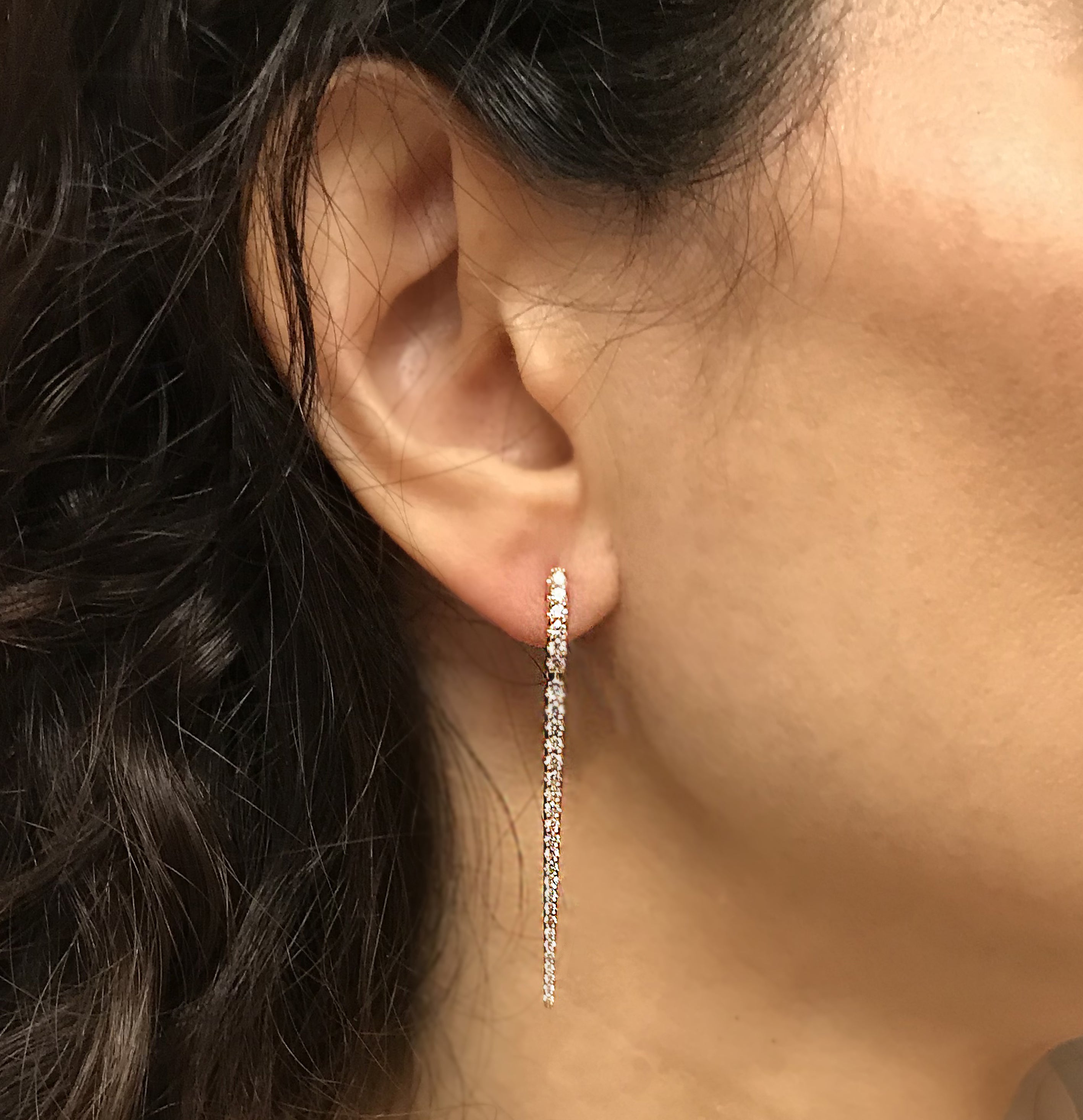 Pendientes oro rosa 18K, diamante color GH, claridad SI 0.95 ct, 58 piedras, cierre presión