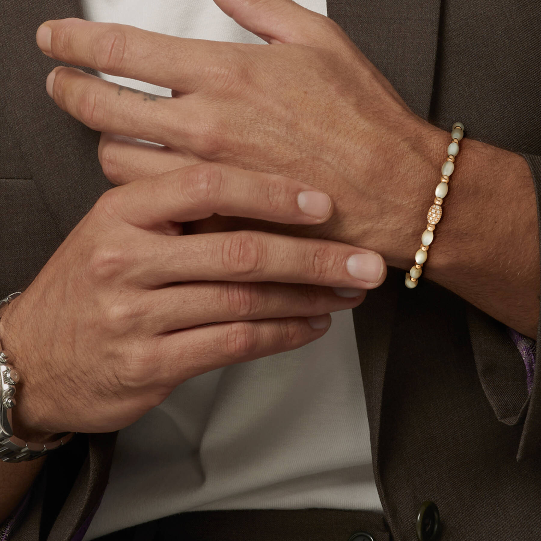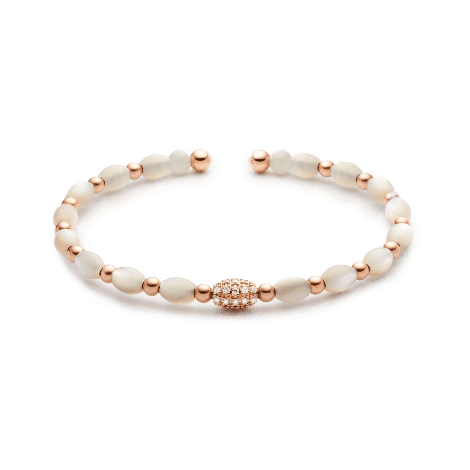 18K yellow gold bracelet, diamond color GH, clarity SI 0.24 ct, mother of pearl, 34 stones
