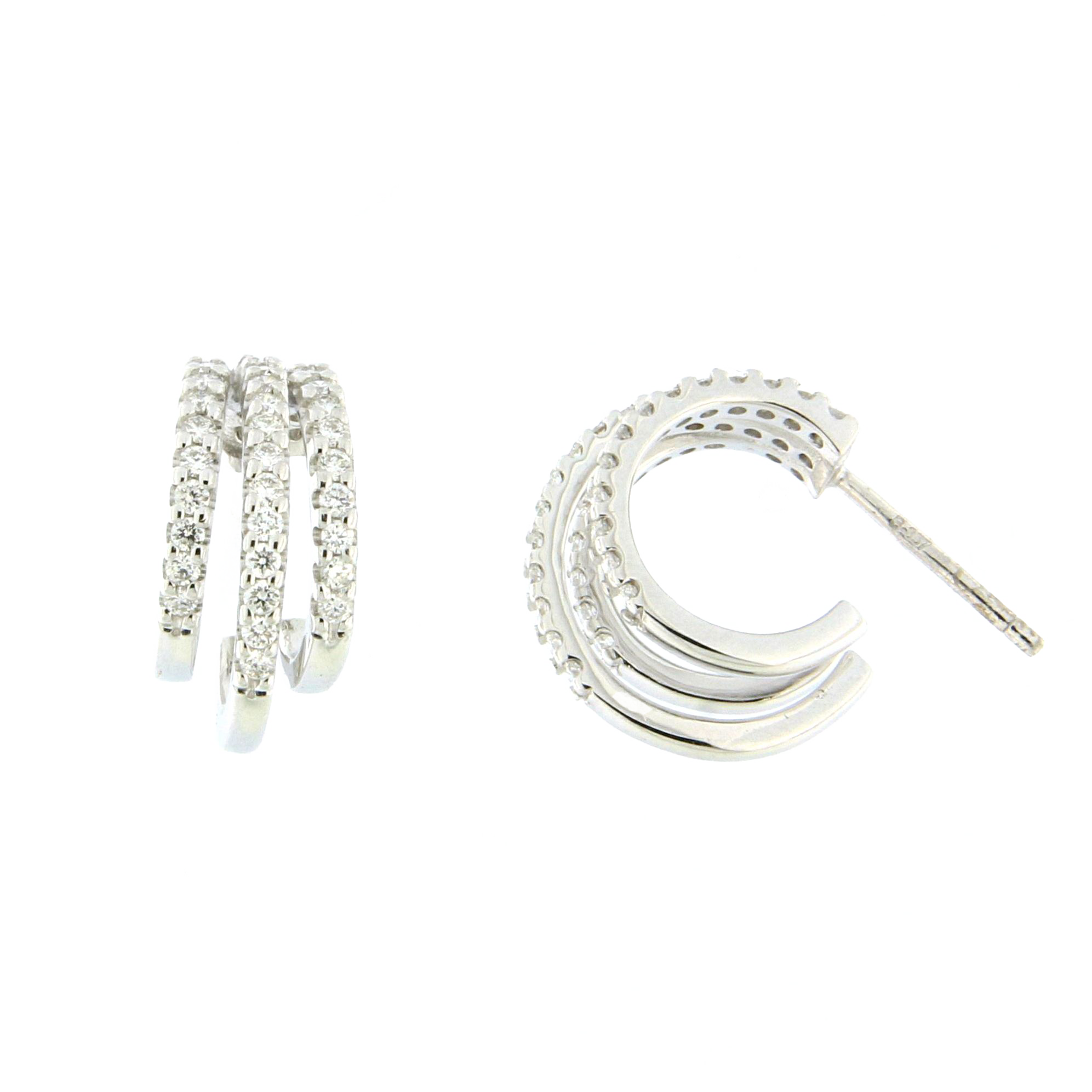 18K white gold earring, diamond color GH, clarity SI 0.71 ct, 84 stones, pressure clasp