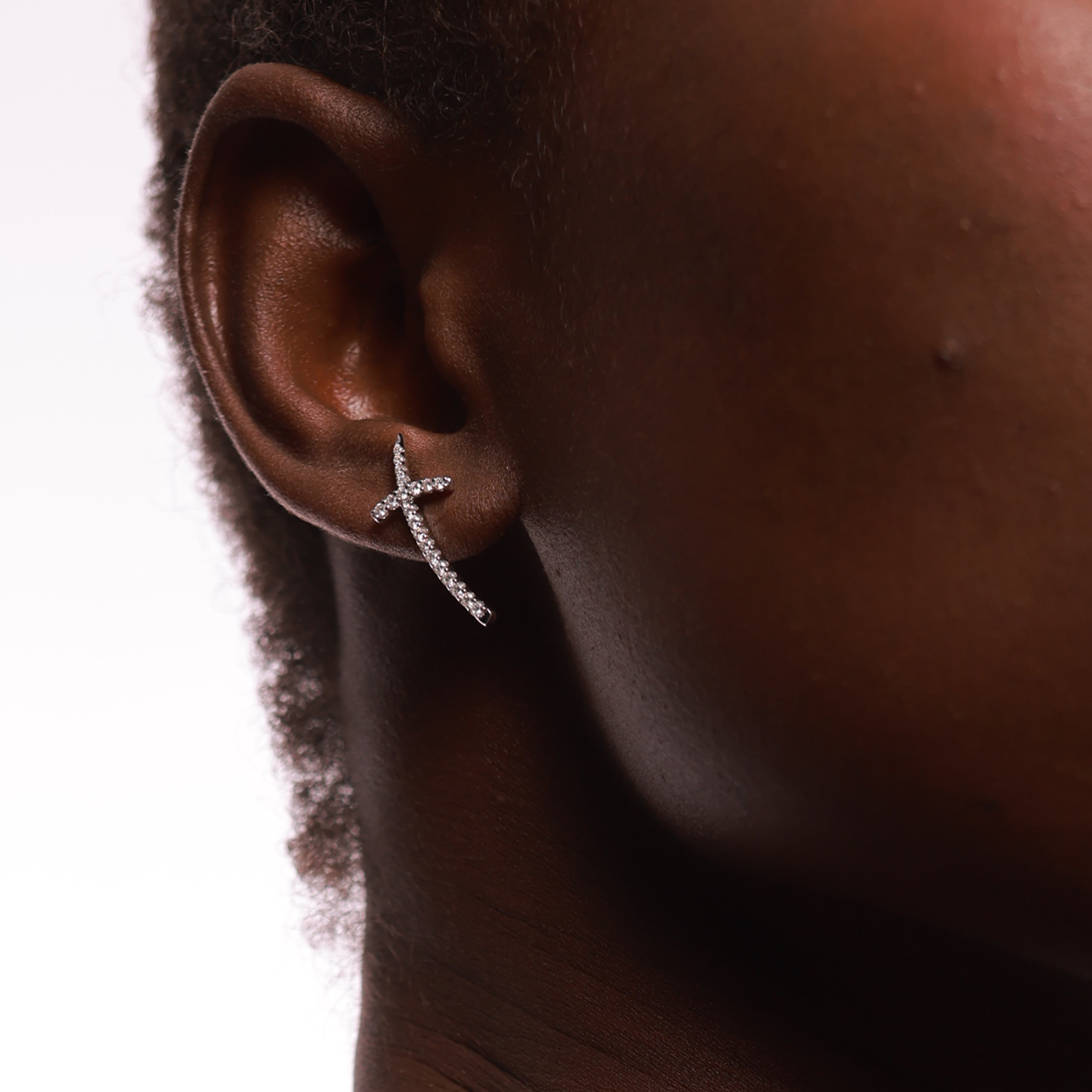 18K white gold earring, diamond color GH, clarity SI 0.40 ct, 40 stones, pressure clasp