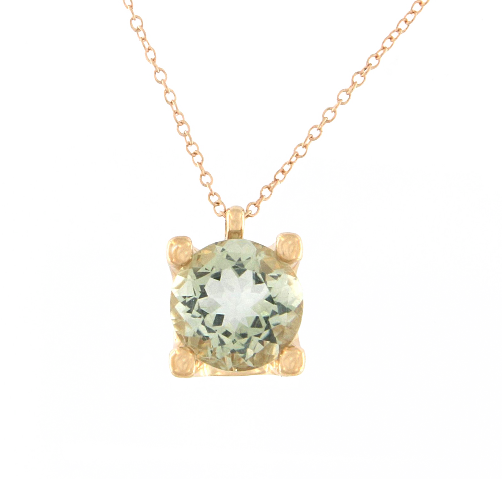 18K rose gold pendant, prasiolite, 42cm rolo chain lobster clasp