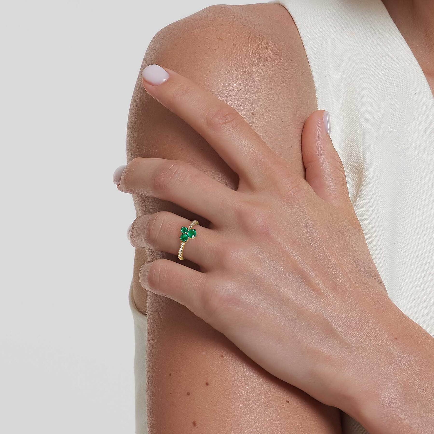 18K yellow gold ring, diamond color GH, clarity SI 0.15 ct, emerald, 13 stones