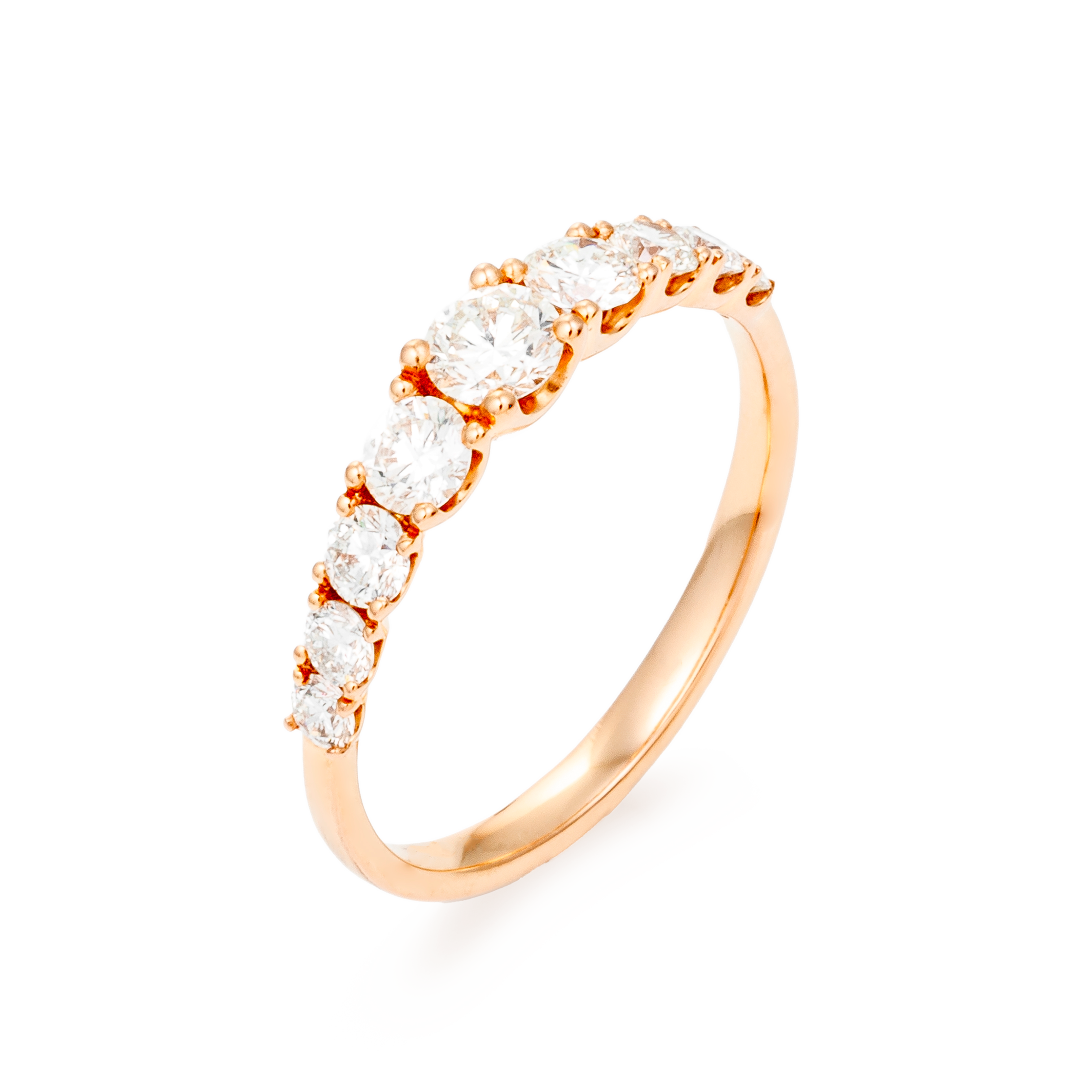 18K yellow gold ring, diamond color GH, clarity SI 0.62 ct, 9 stones
