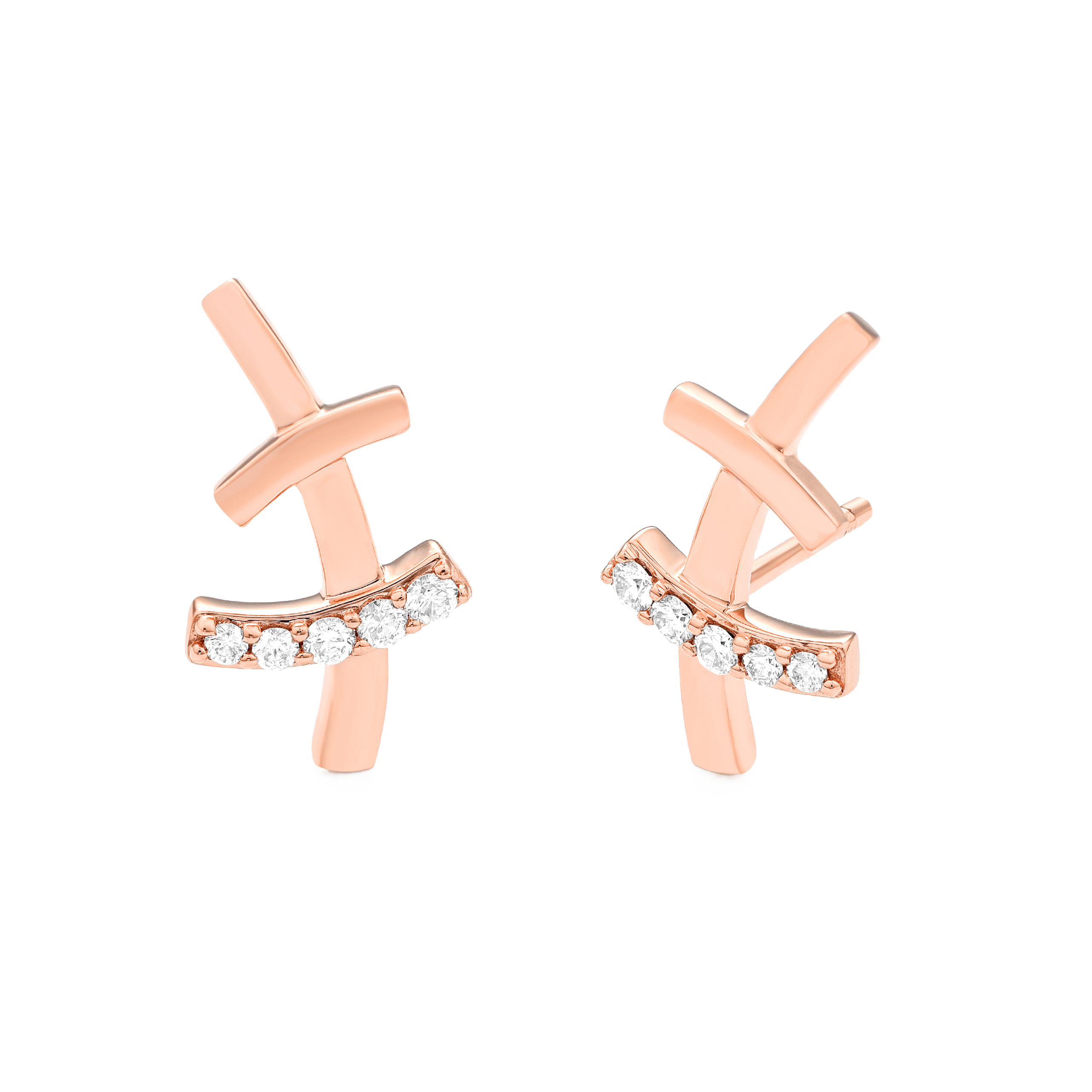 18K rose gold earring, diamond color GH, clarity SI 0.23 ct, 10 stones, pressure clasp
