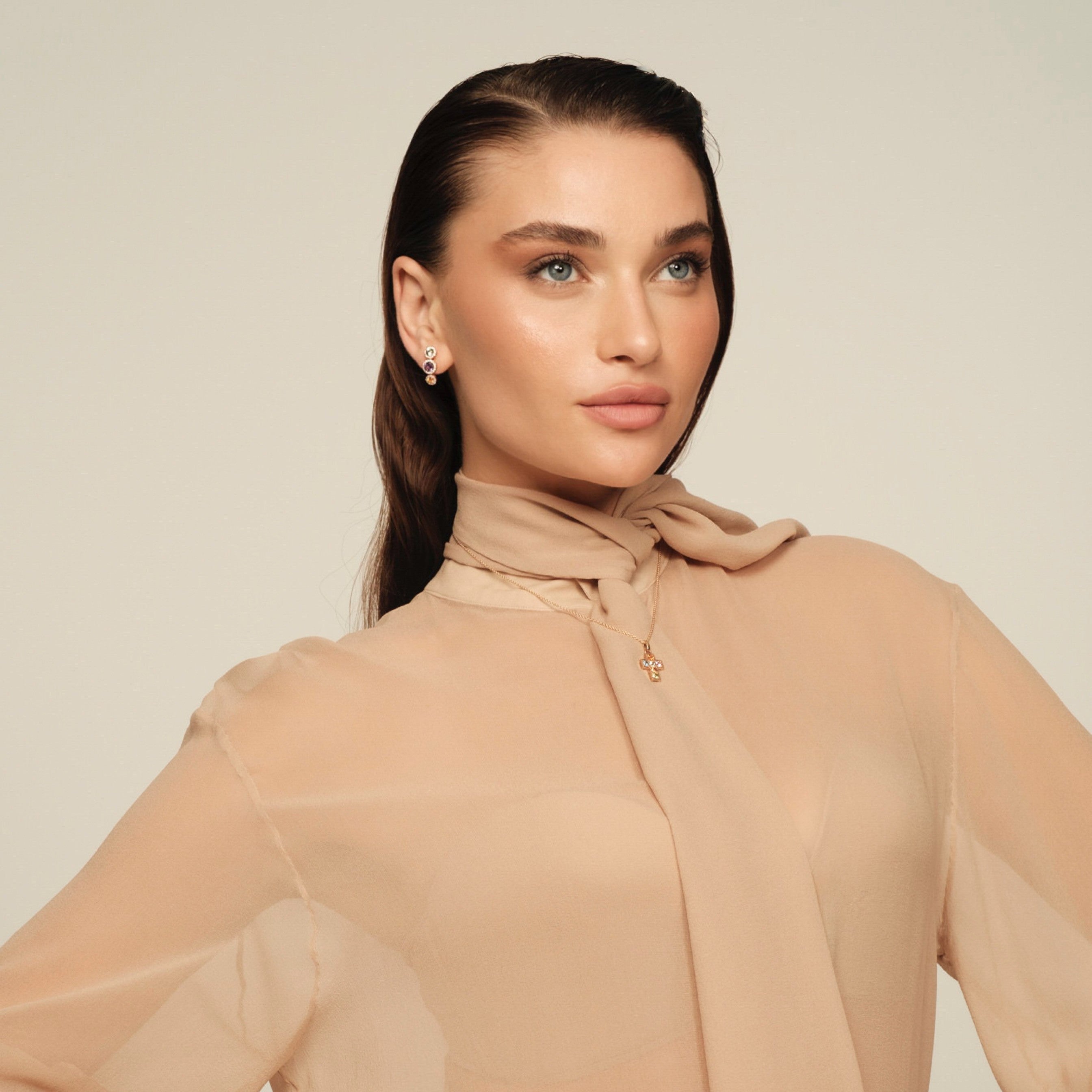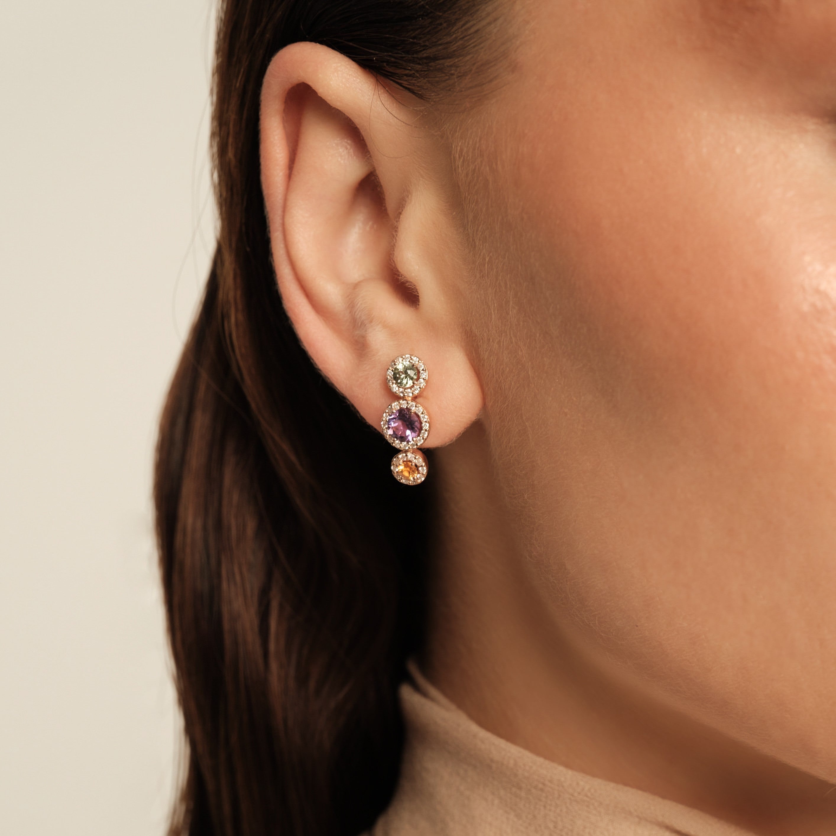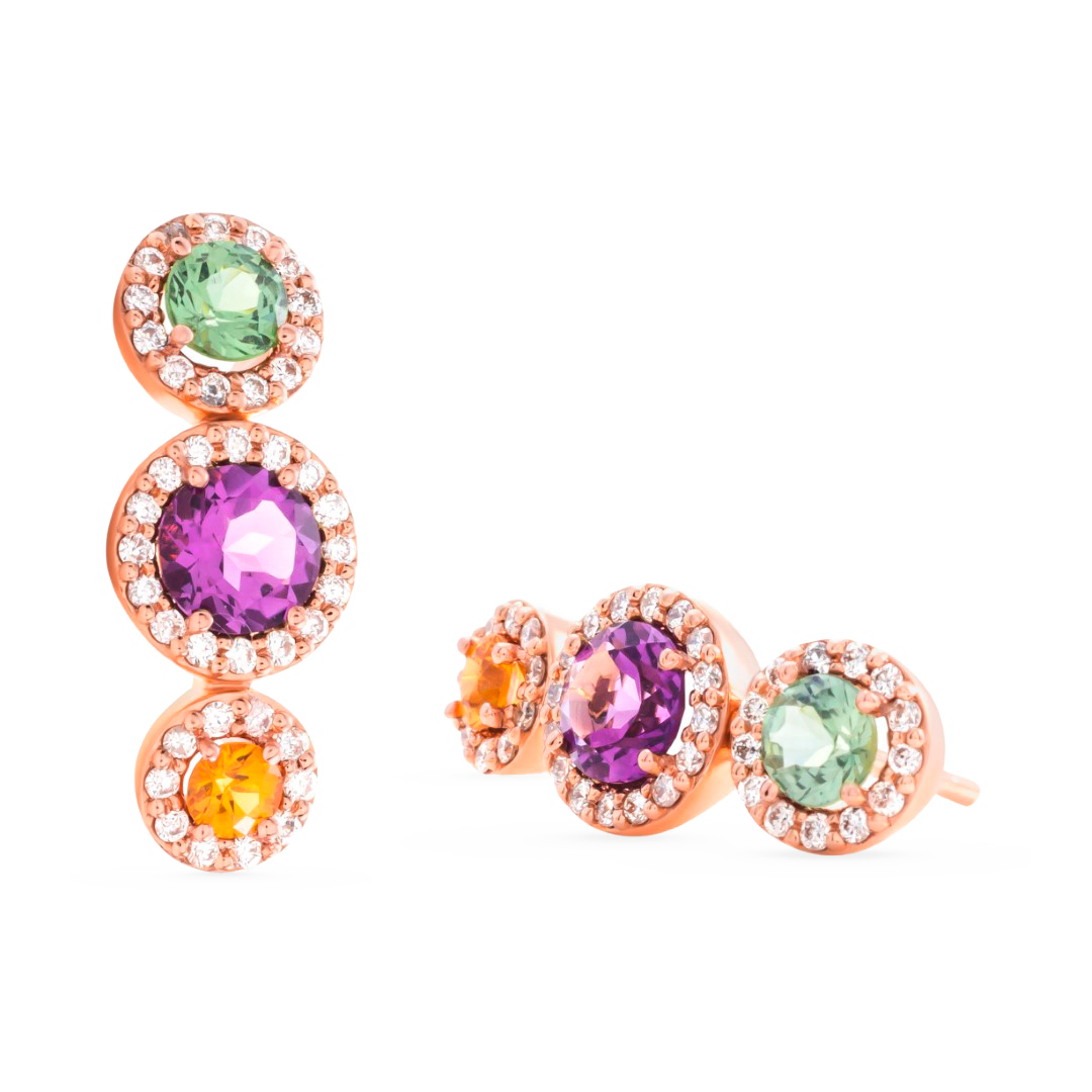 18K rose gold earring, diamond color GH, clarity SI 0.44 ct, peridot, amethyst and citrine, 78 stones, pressure clasp