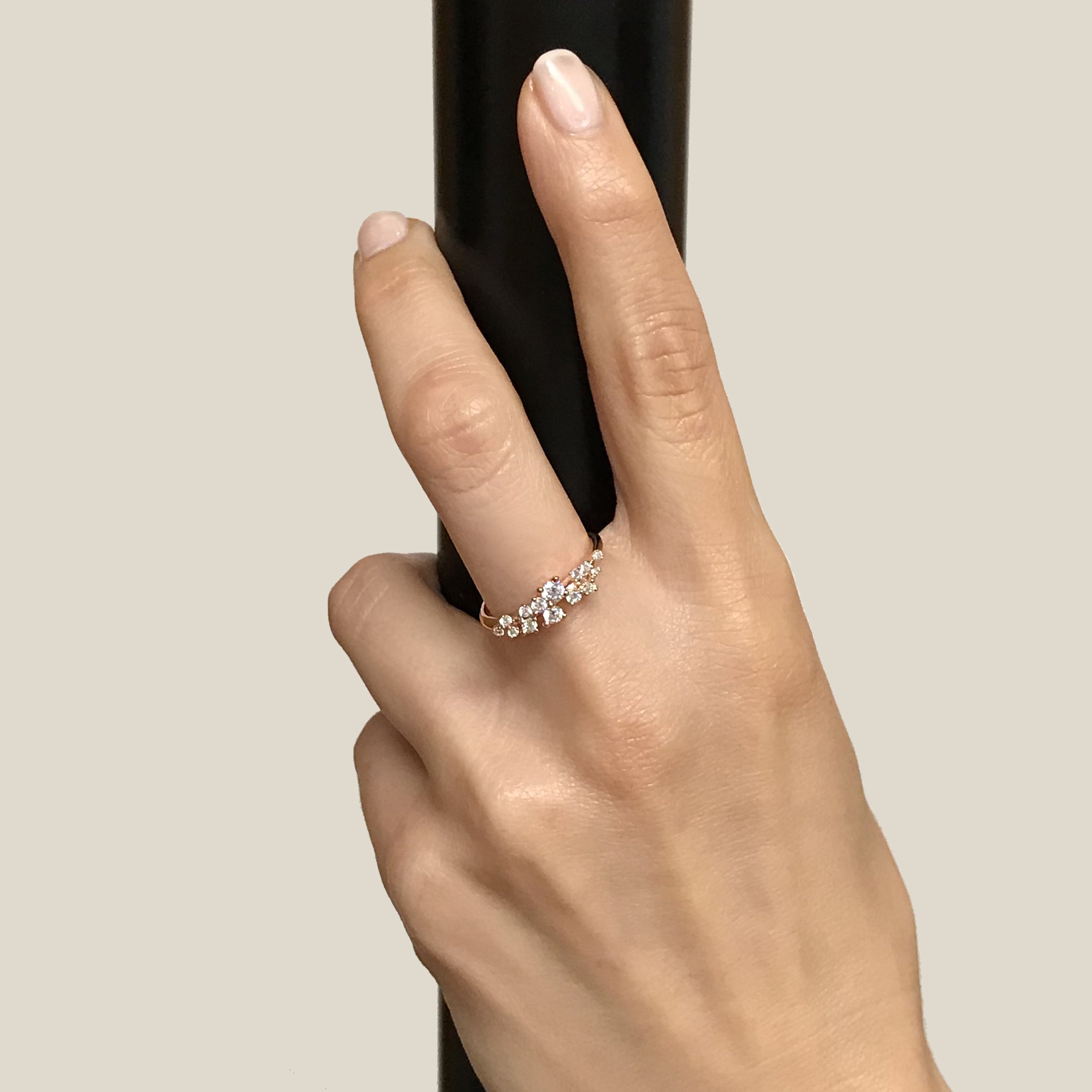 18K rose gold ring, diamond color GH, clarity SI 0.42 ct, 14 stones