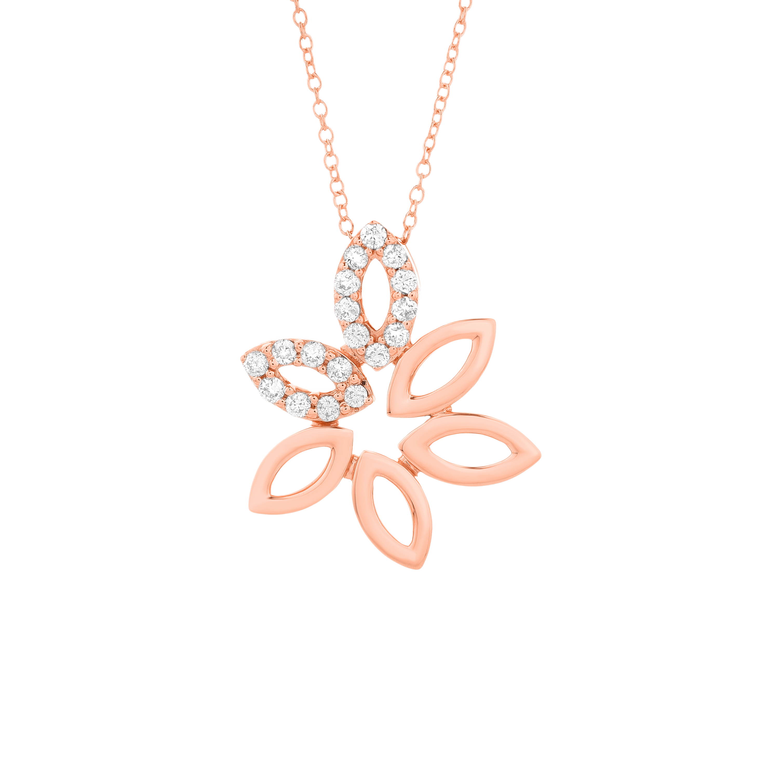 18K rose gold pendant, diamond color GH, clarity SI 0.19 ct, 18 stones, 42cm rolo chain lobster clasp