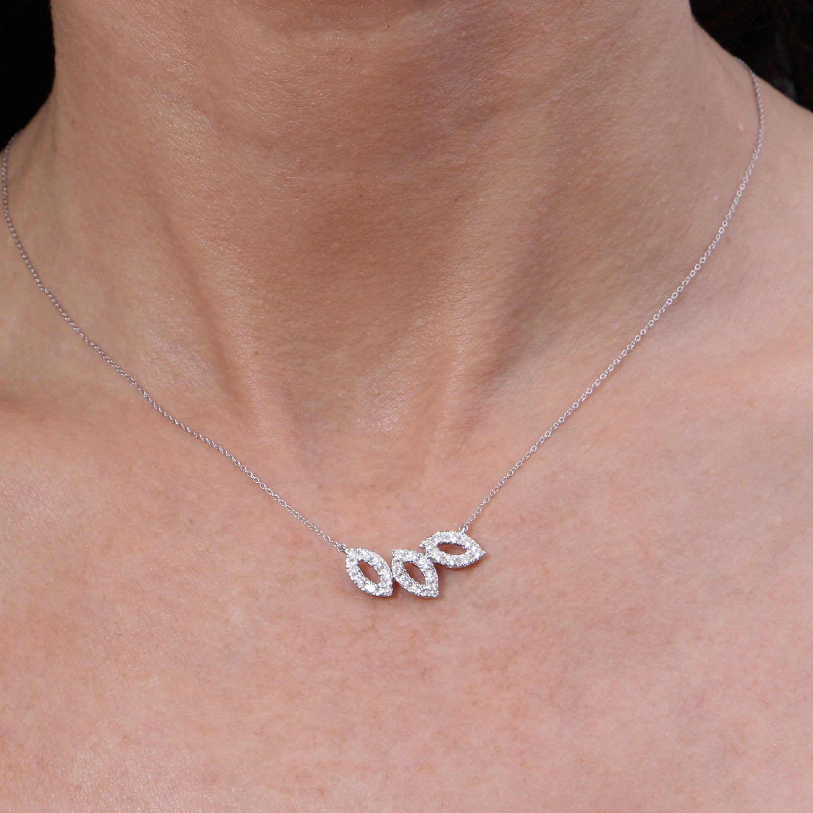 18K white gold pendant, diamond color GH, clarity SI 0.61 ct, 24 stones, 42cm chain lobster clasp