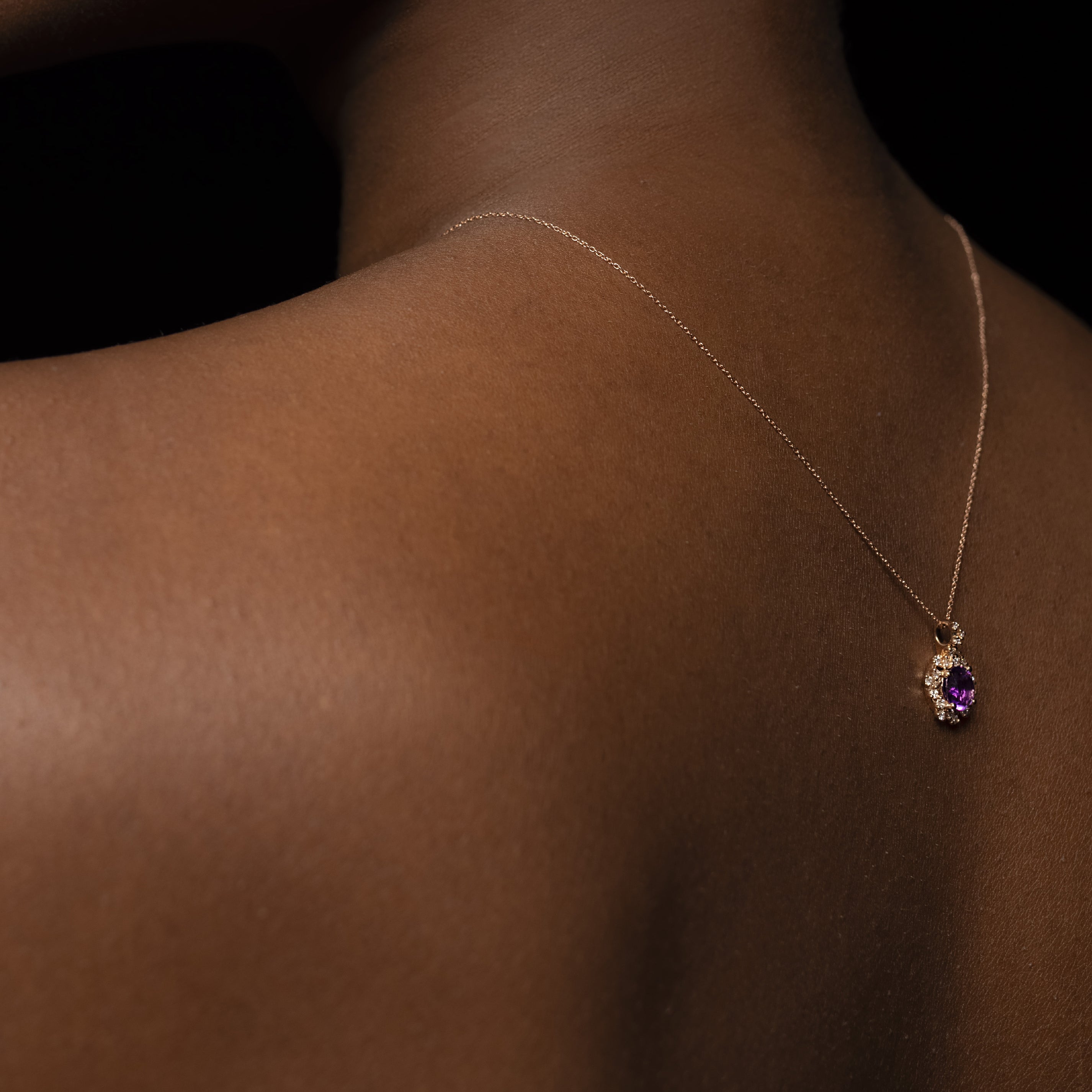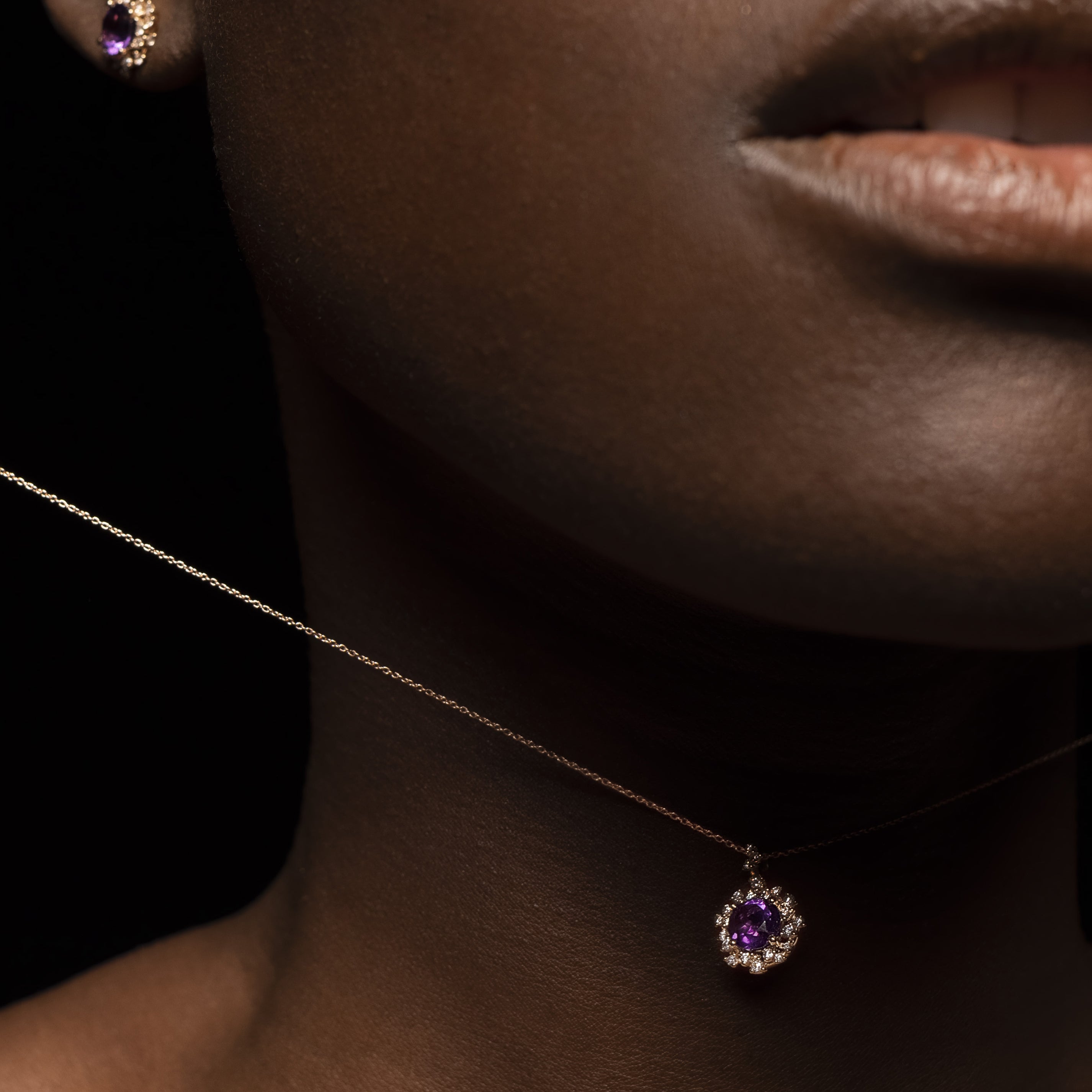 Collection Princess Pendant Gold, Diamond 0.18 ct, amethyst, halo