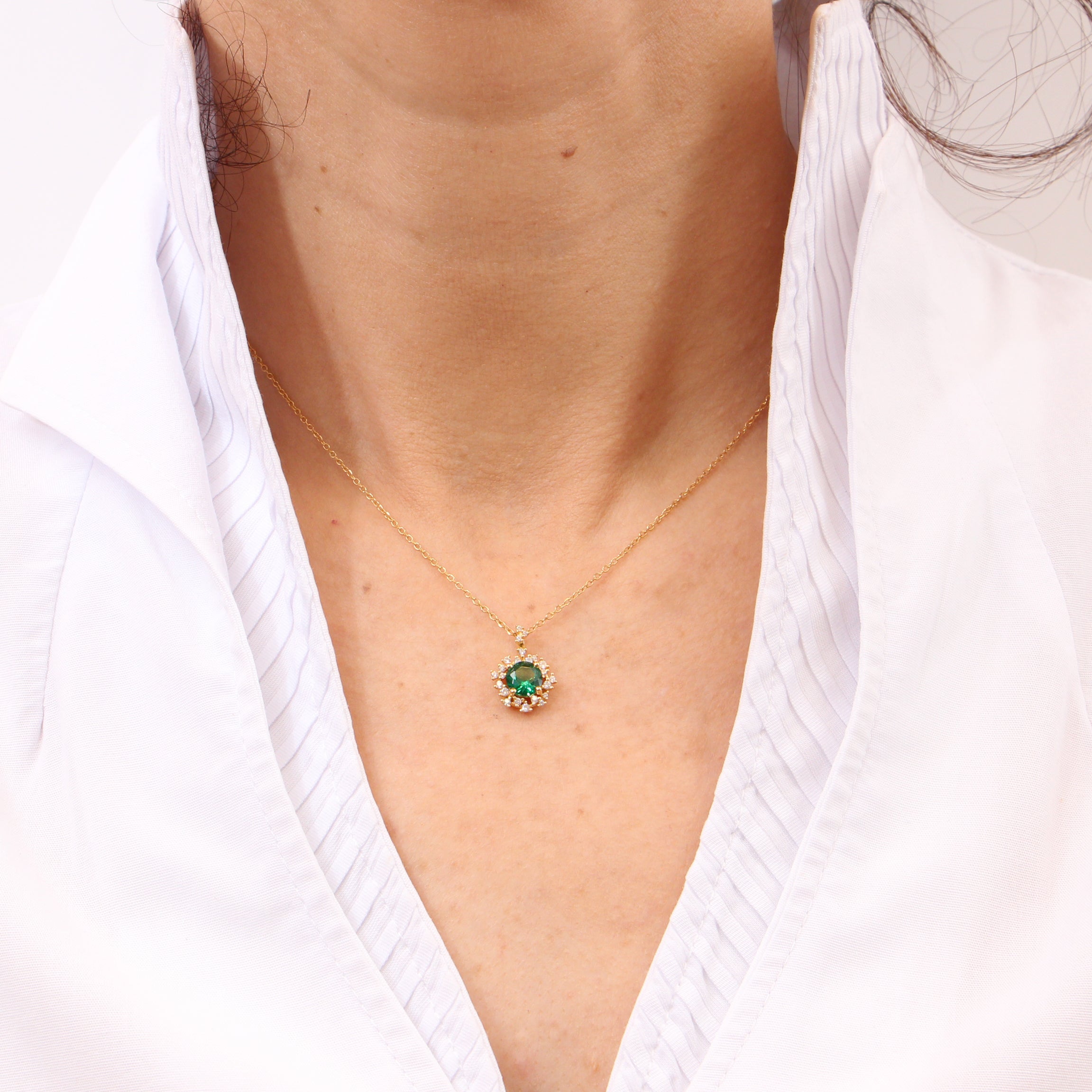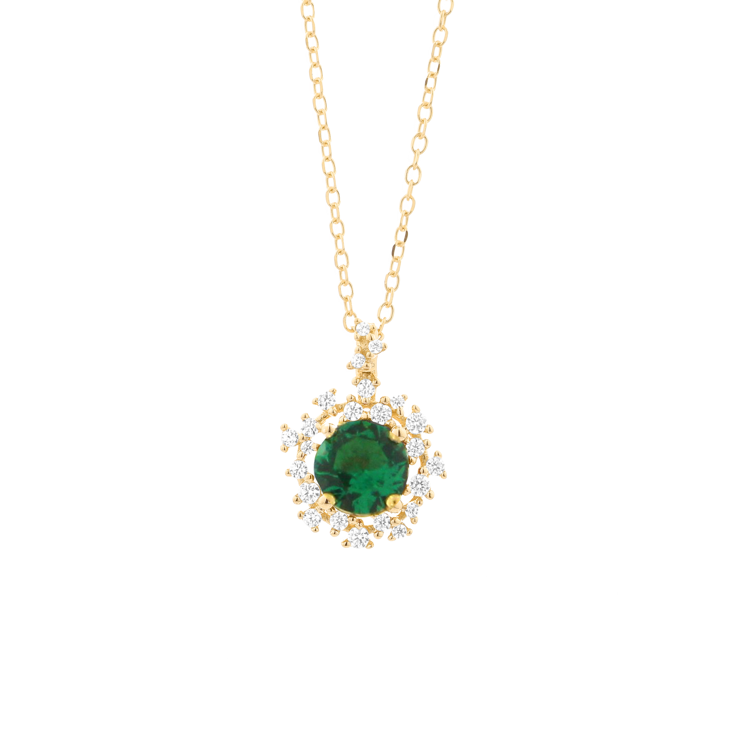 Collection Princess Pendant Gold, Diamond 0.17 ct, emerald, halo