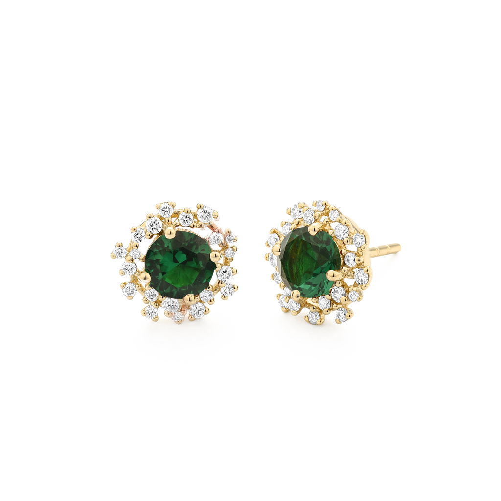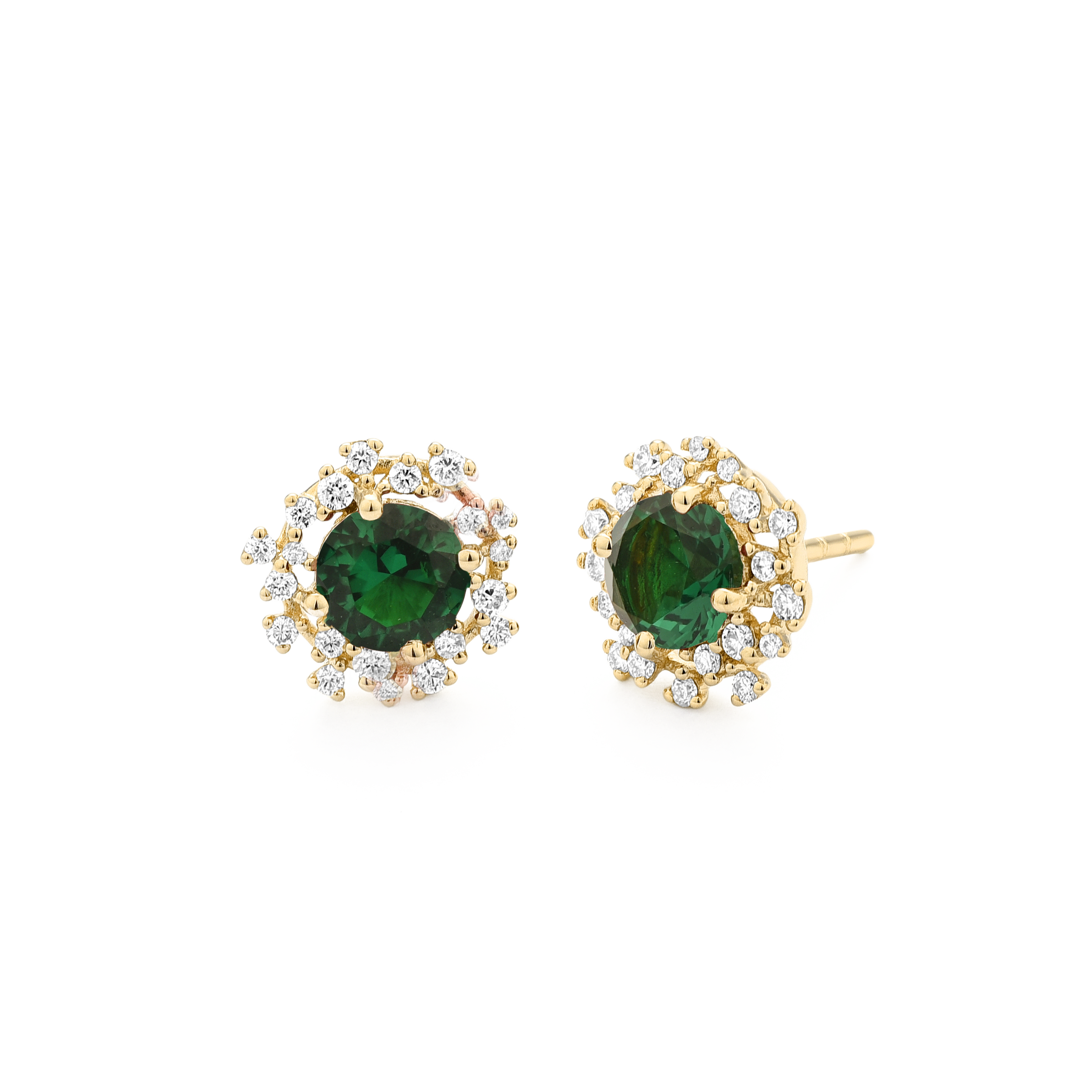 Collection Princess Earring Gold, Diamond 0.32 ct, emerald, halo