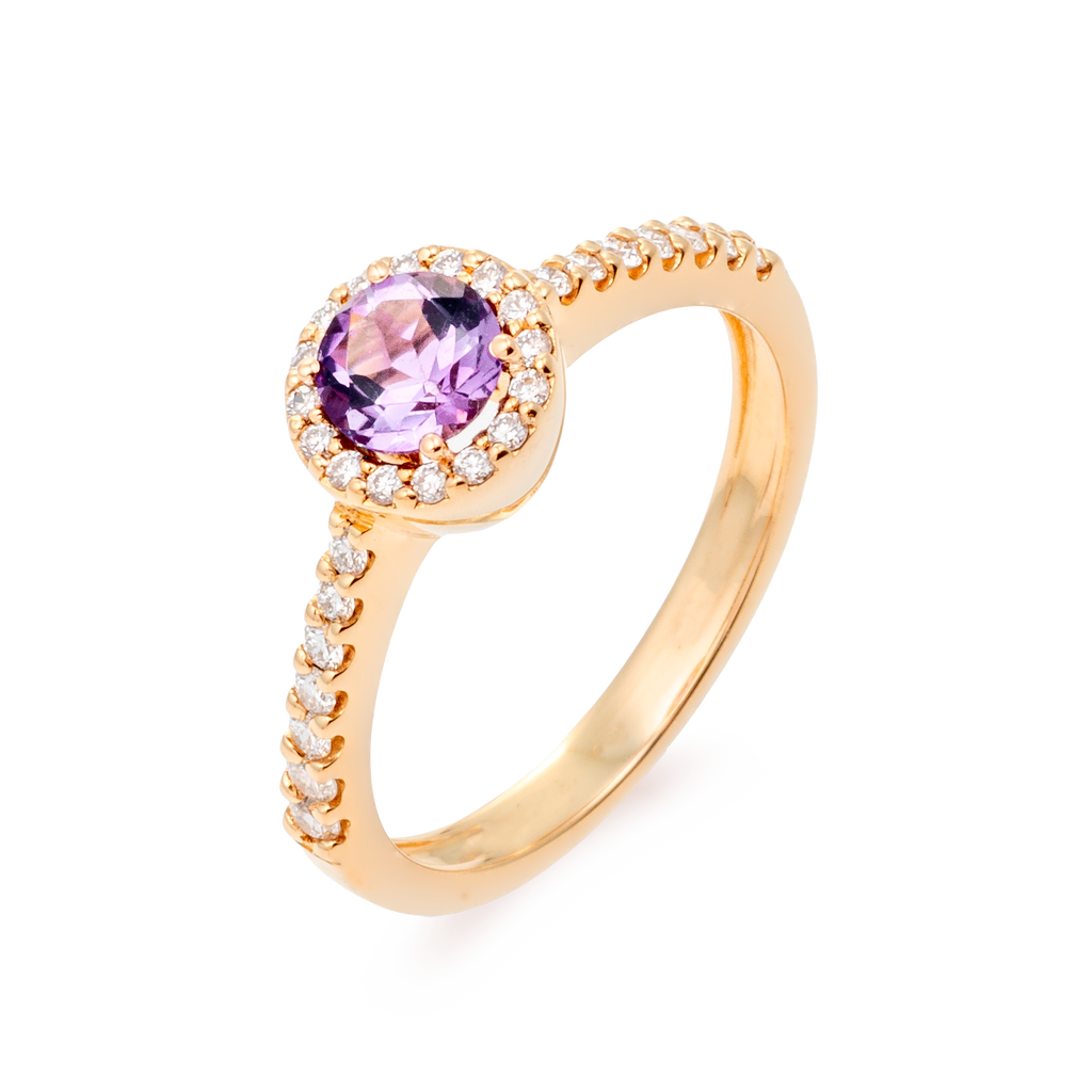 Collection Classic Ring Gold, Diamond 0.29 ct, amethyst, halo