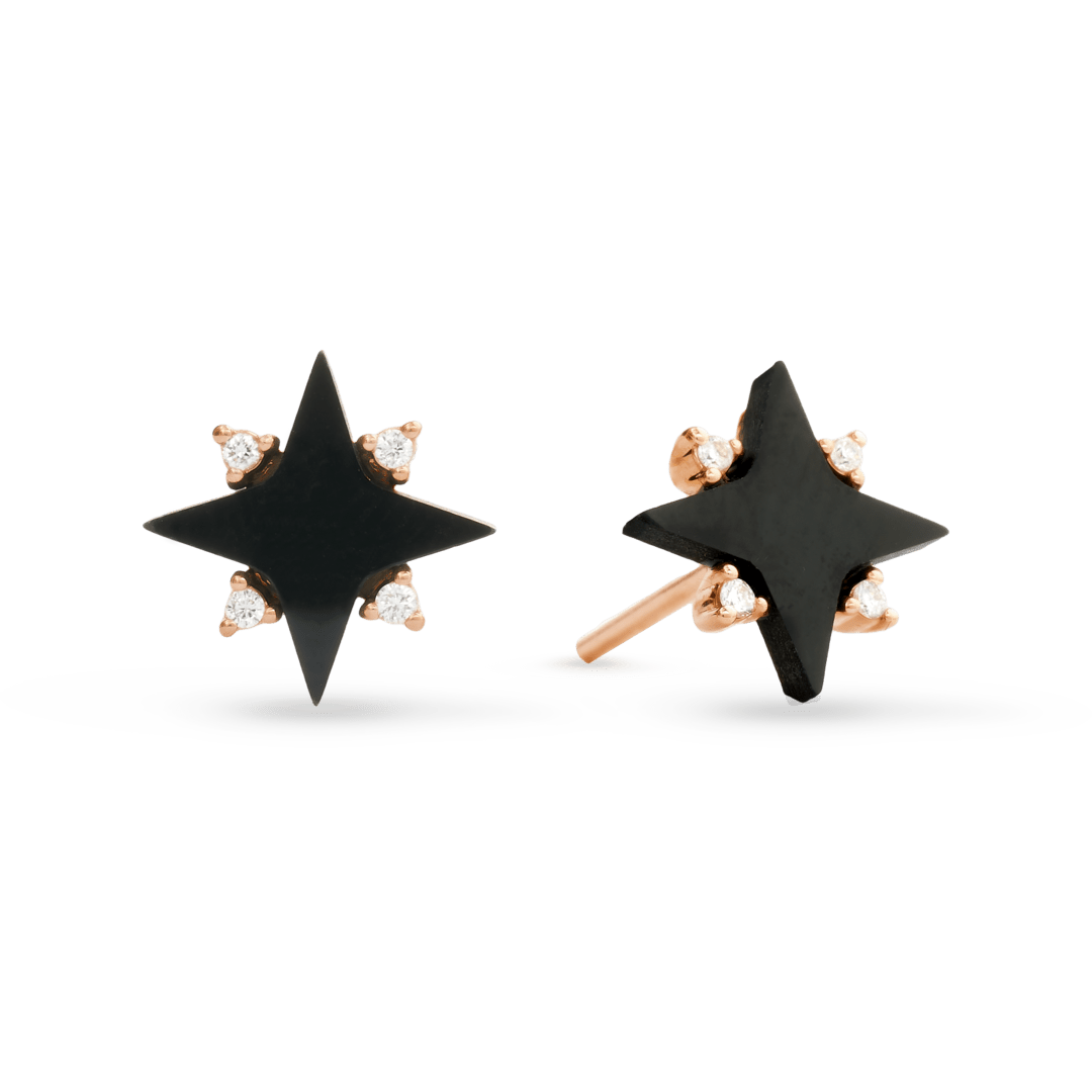 18K rose gold earring, diamond color GH, clarity SI 0.10 ct, onyx, 8 stones, pressure clasp