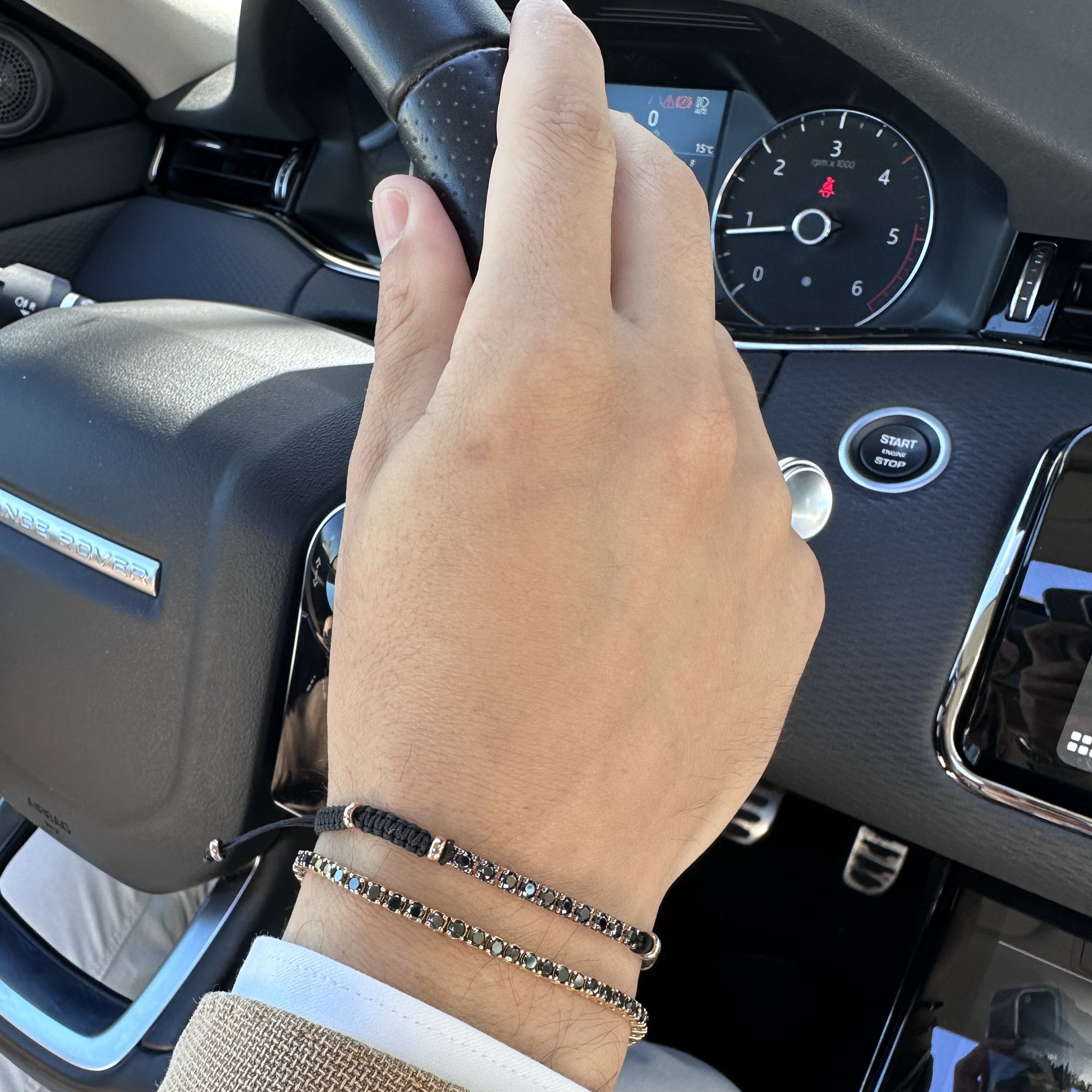 18K rose gold bracelet, 14 stones, black diamond riviere link