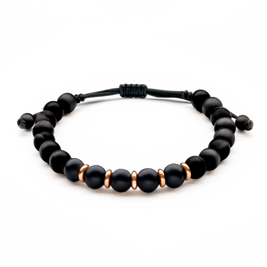 18K rose gold bracelet, onyx, Adjustable nylon cord from 15cm to 25cm