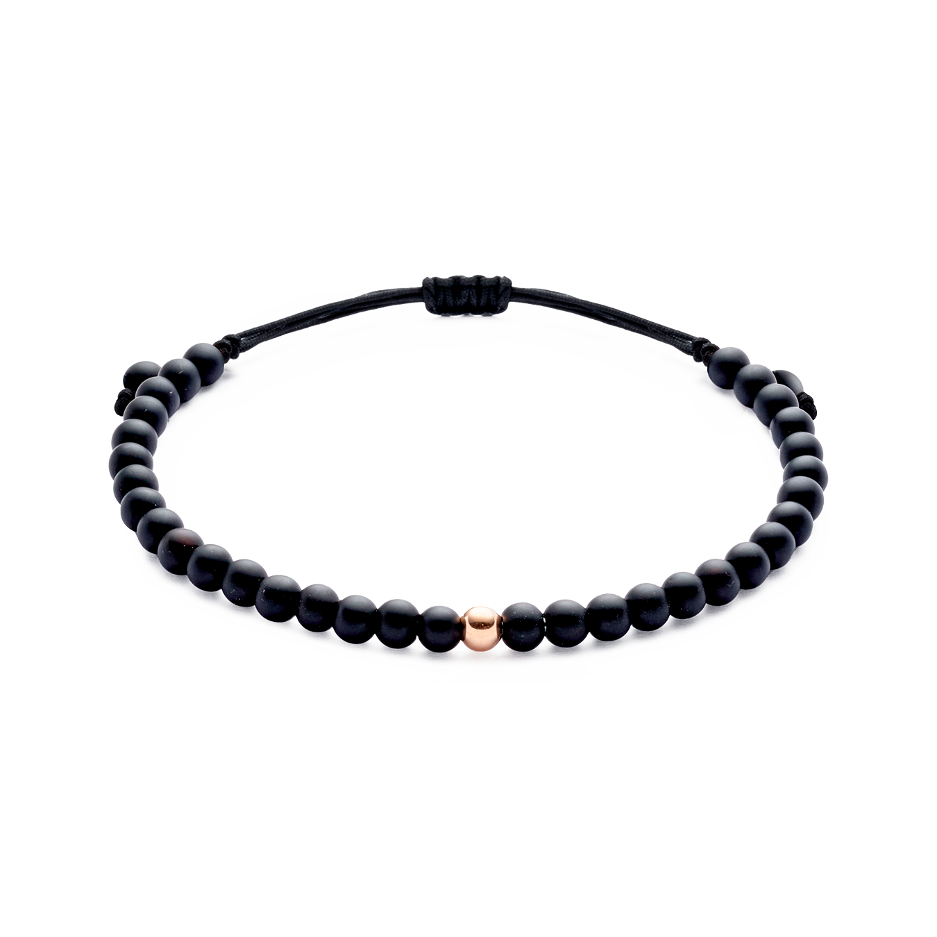 18K rose gold bracelet, onyx, 4mm bead, Adjustable nylon cord from 15cm to 25cm