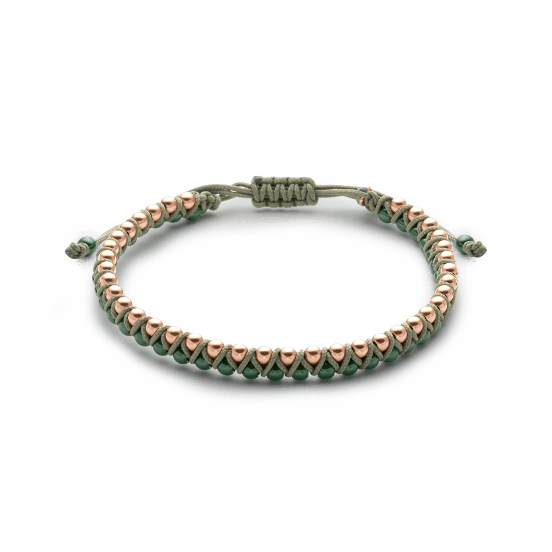 18K rose gold bracelet, 3mm bead, Adjustable nylon cord from 15cm to 25cm