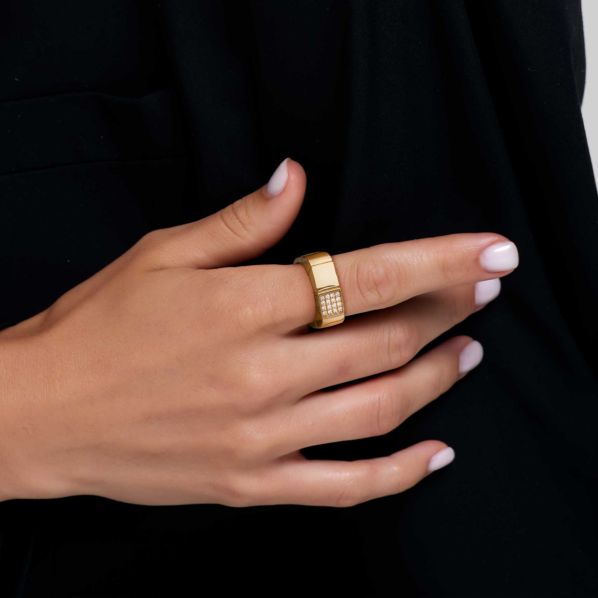 18K yellow gold ring, diamond color GH, clarity SI 0.24 ct, 30 stones