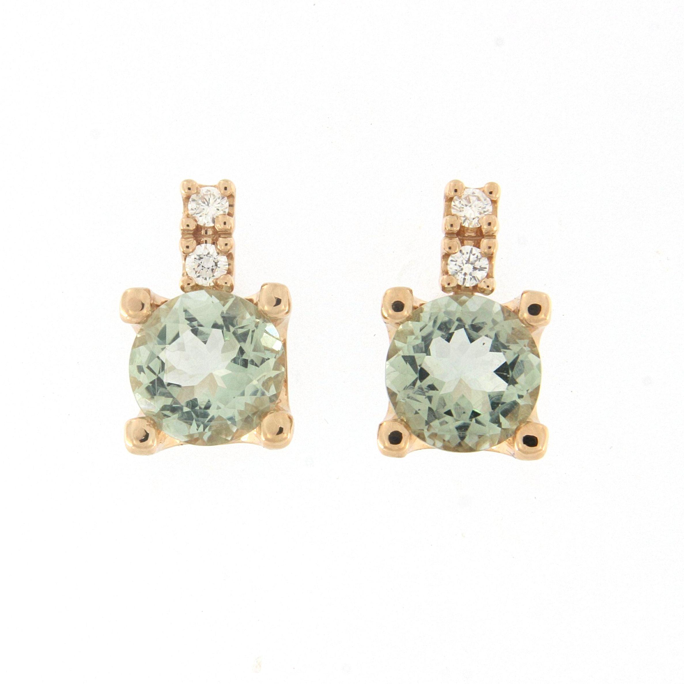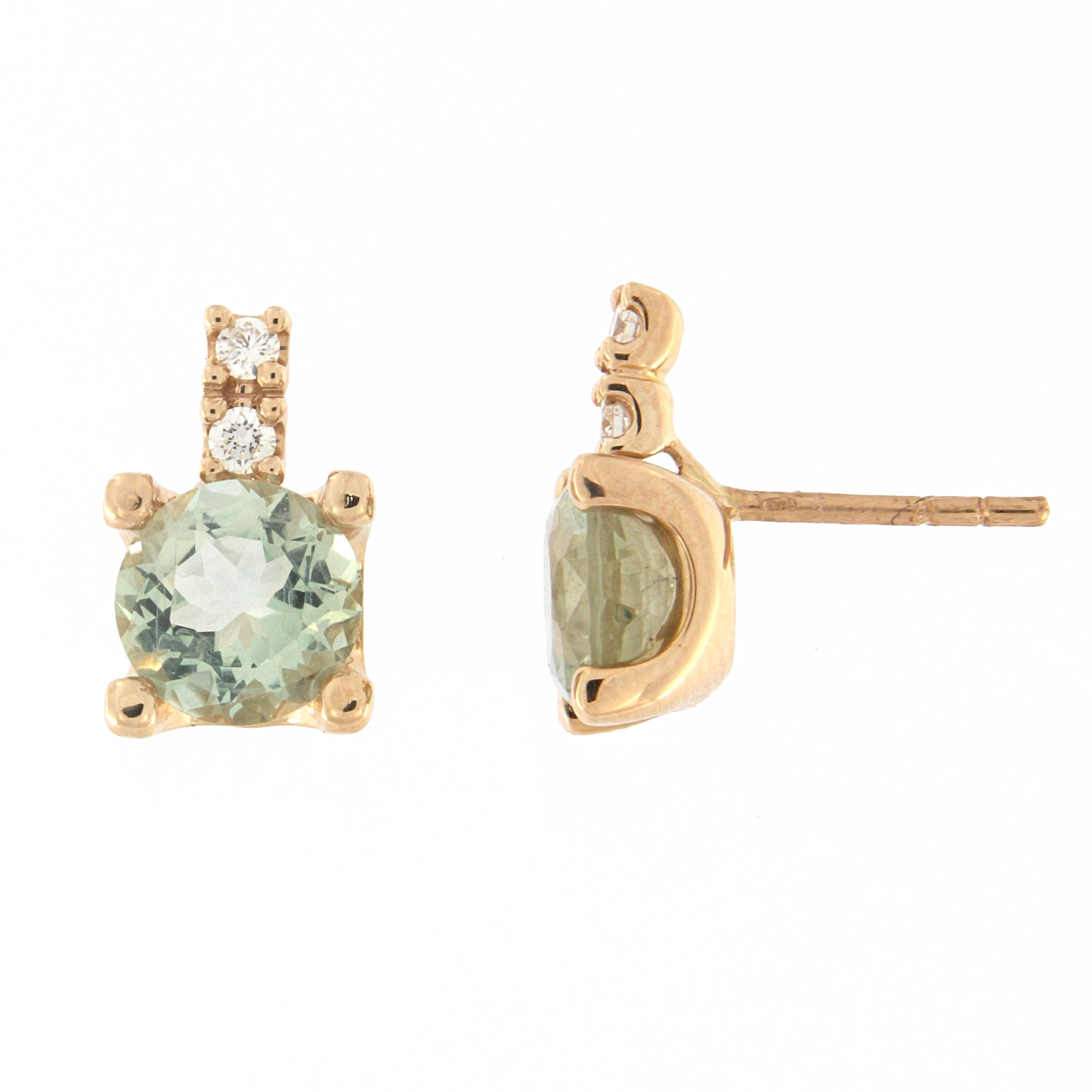 18K rose gold earring, diamond color GH, clarity SI 0.16 ct, prasiolite, 4 stones, pressure clasp